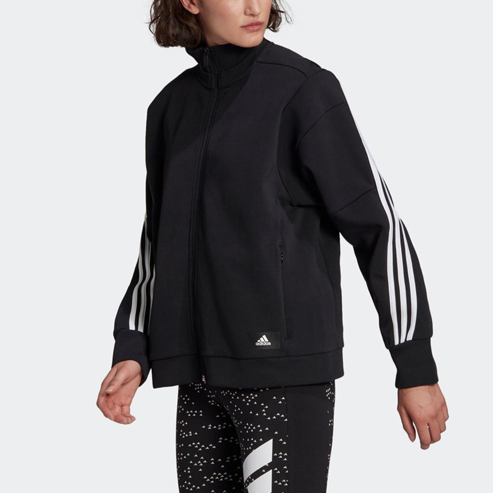 Adidas Куртка W Fi 3S, цветные блоки, три полоски, тренировочная ретро-спортивная куртка со стоячим воротником, женские куртки, черный цвет GL0338