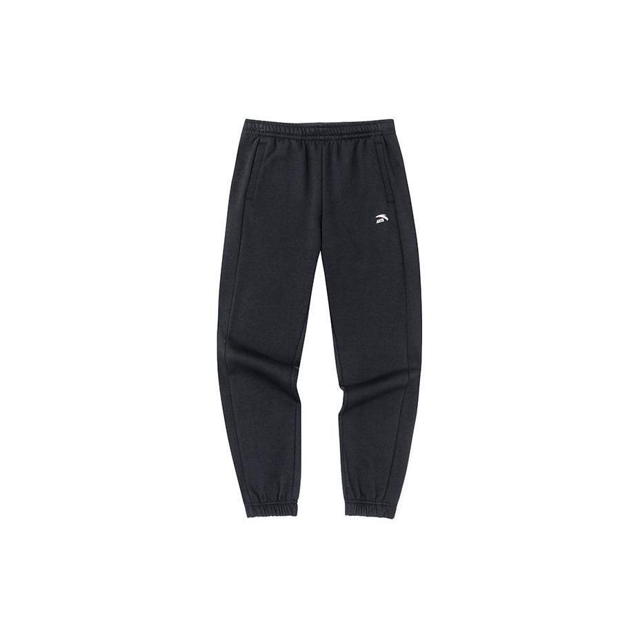 Anta Женские спортивные штаны из плотного флиса с однотонным принтом и небольшим логотипом, черные 162248309-2