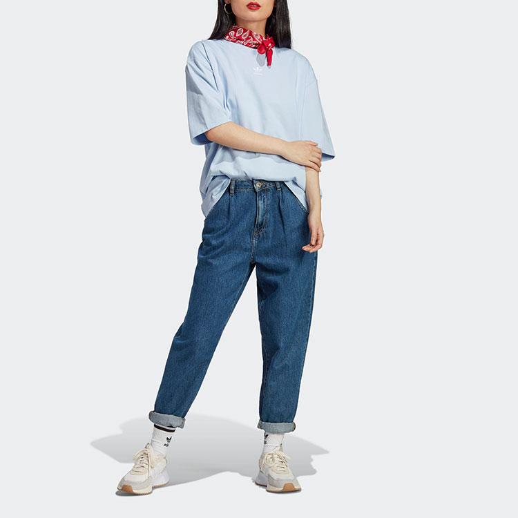 Adidas Футболка с коротким рукавом и круглым вырезом, с логотипом и буквенным принтом, женская, синяя IL9624