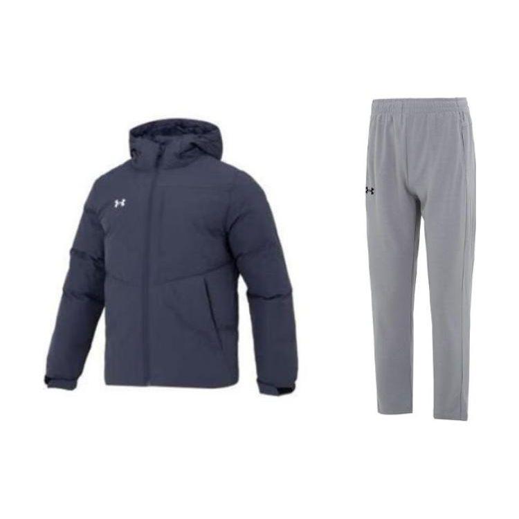 Under Armour Однотонный повседневный пуховик с капюшоном и длинными рукавами, дышащие спортивные брюки, повседневный спортивный комплект, мужская верхняя одежда 23600801-013+23600703-014