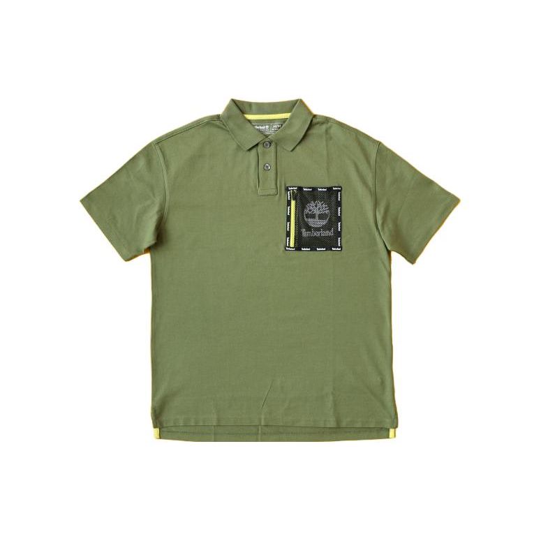 Timberland Рубашка-поло с коротким рукавом и застежкой-молнией для мужчин, зеленая A1ZUE-V46