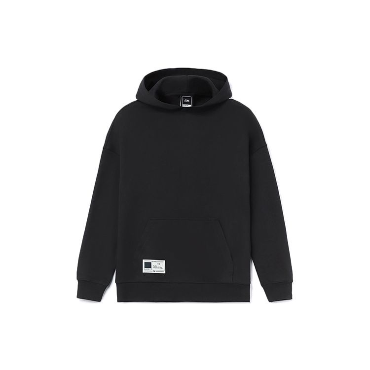 Li Ning Sports Trend Series Small Logo Pocket Solid Color Loose Hoodie Unisex Hoodies Black AWDR869-7
