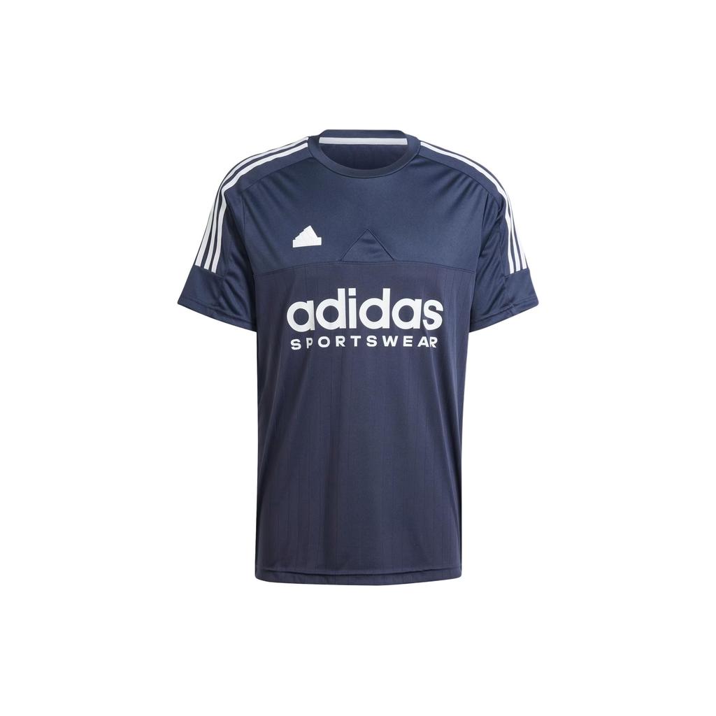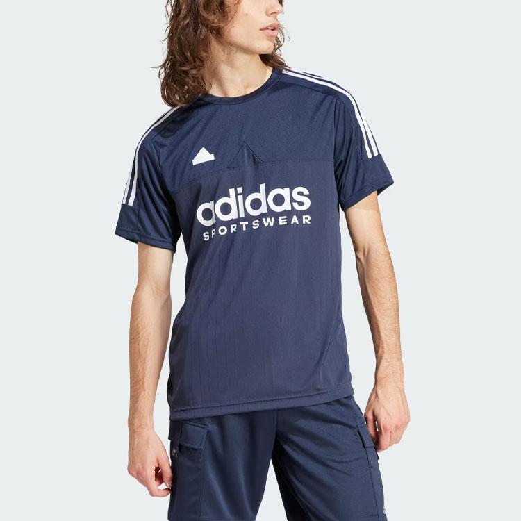 Adidas Мужская футболка с коротким рукавом, круглым вырезом, цветными блоками и принтом букв 'Три полоски', топы, темно-синий IS1501