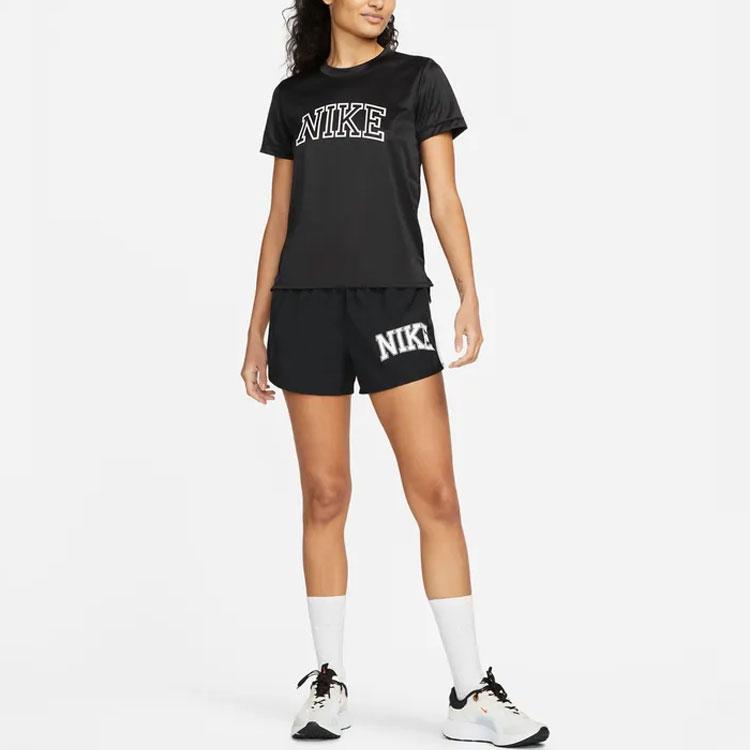 Nike Dri-FIT Swoosh Logo Letter Print American Vintage Crew Neck Sports T Shirt Women T Shirts Black DQ6372-010