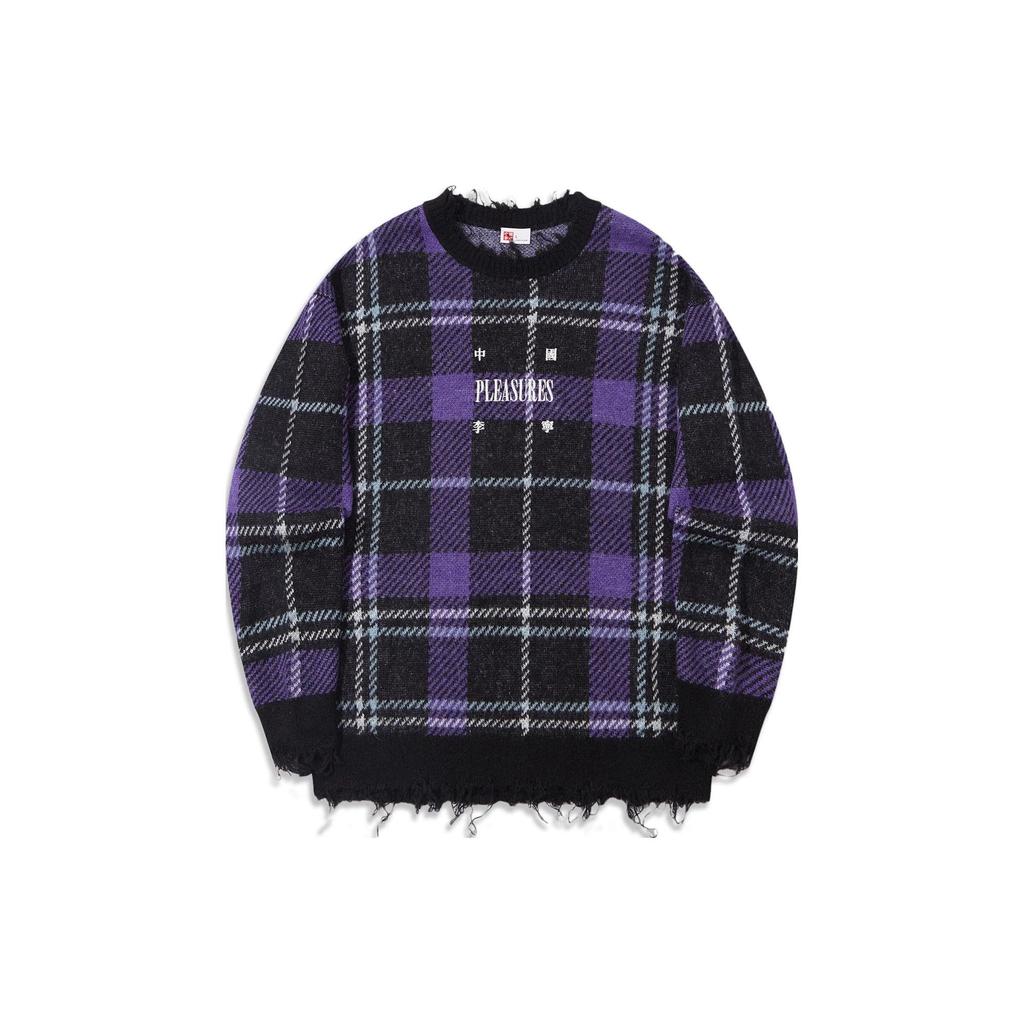 Li Ning X Pleasures Collaboration свободный свитер повседневный вязаный мужской свитер фиолетовый AMBT233-1