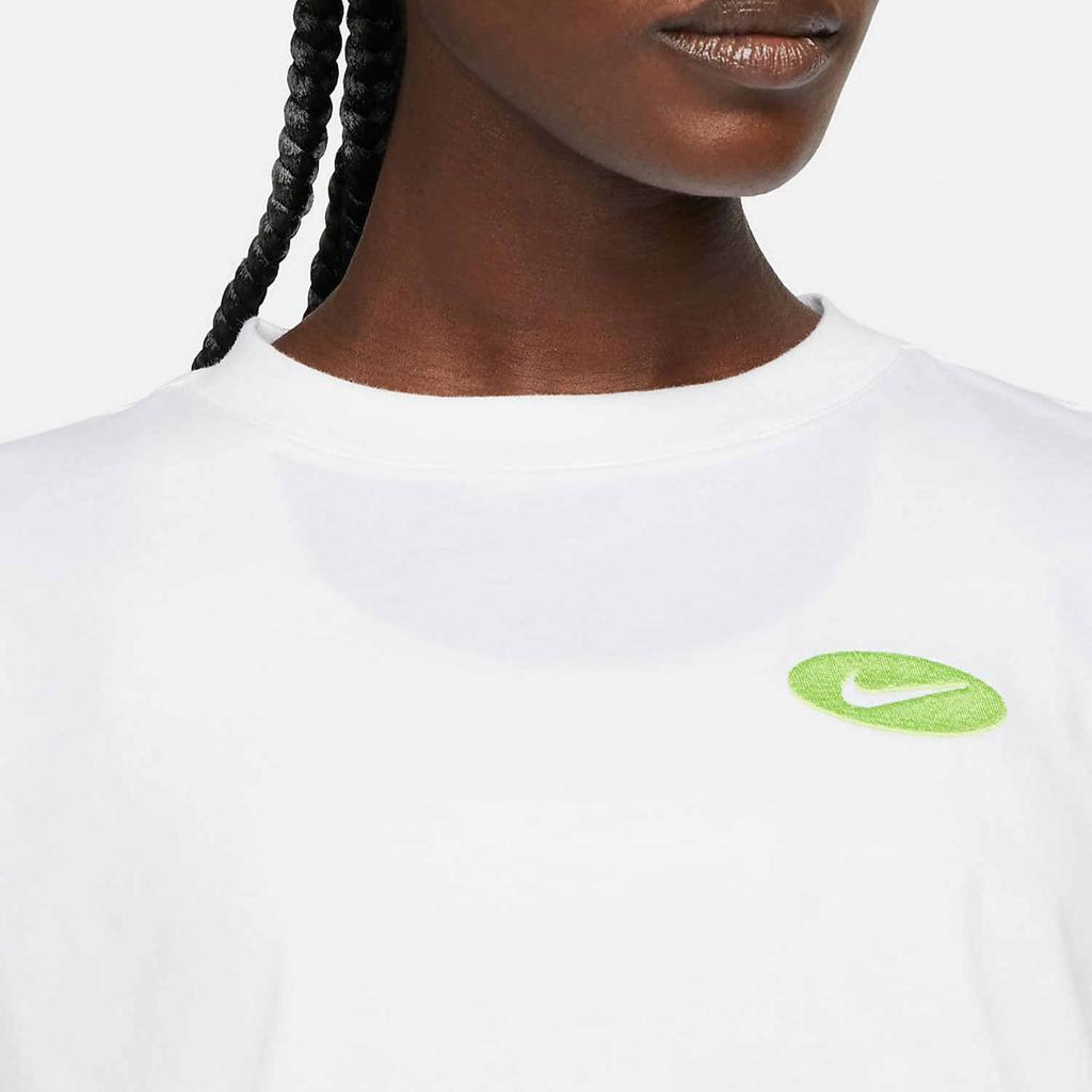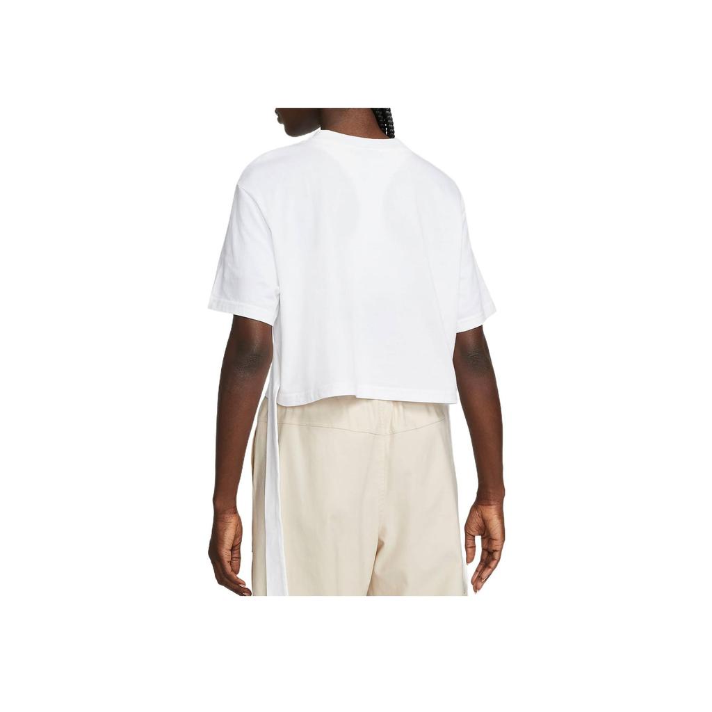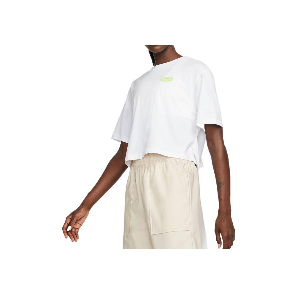 Nike Логотип однотонный спортивный модный дышащий круглый вырез короткий рукав укороченный топ женский белый DM6575-100