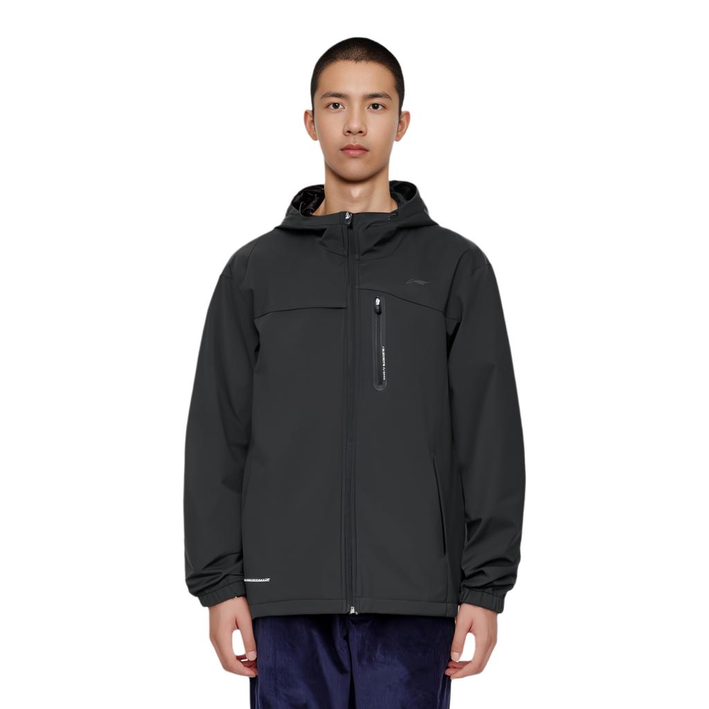 Li-Ning Мужская спортивная куртка Fitness Series из плотного флиса с капюшоном, цвет черный AFDT631-1