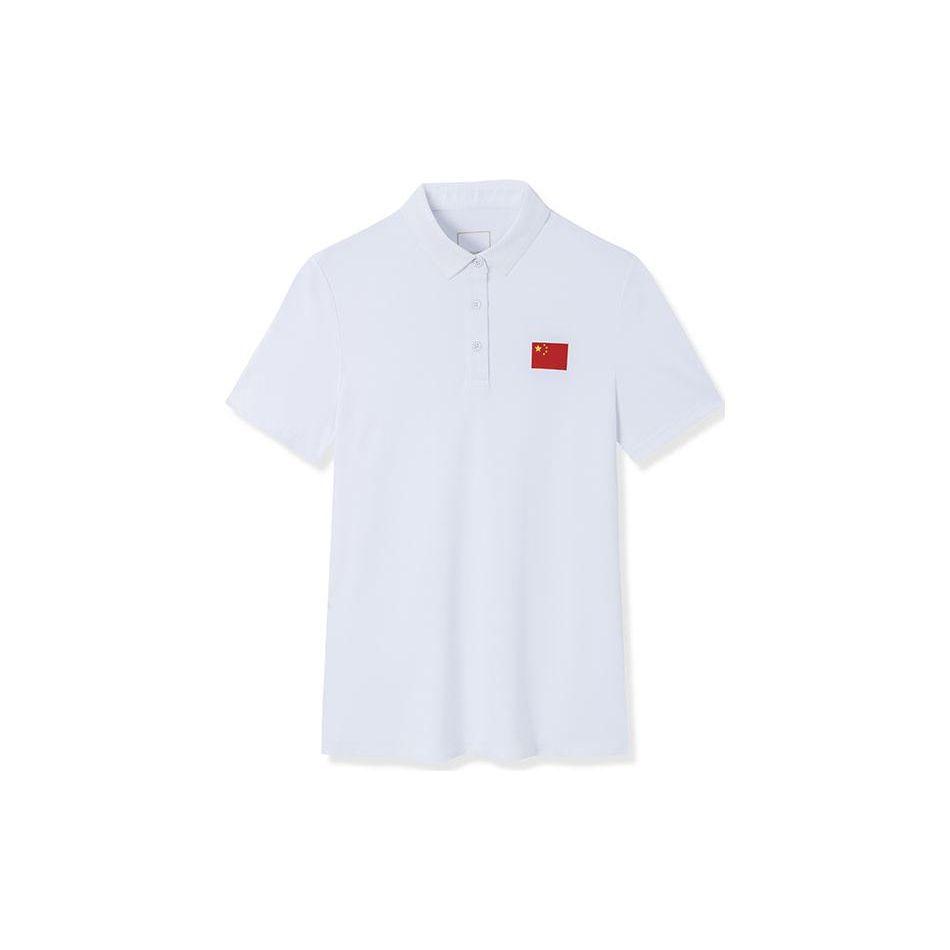 Anta Champion Series однотонный пуловер с принтом национального флага с коротким рукавом, женские рубашки поло, гравийно-белые 162320130-1