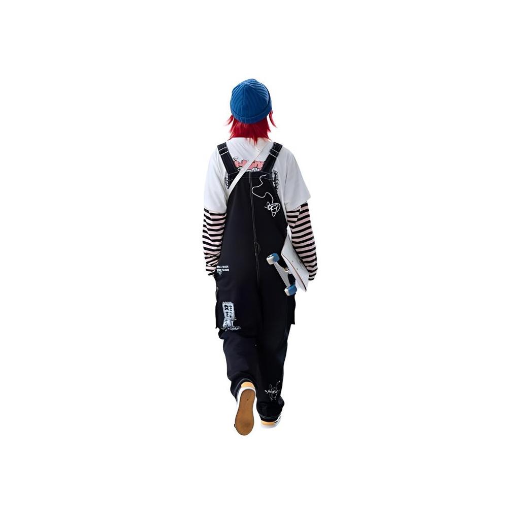 Li Ning X X-Girl Женская доминантная коллаборационная серия Спортивная мода Печатный тканый дышащий свободный комбинезон Женский комбинезон черный AKXQ454-2