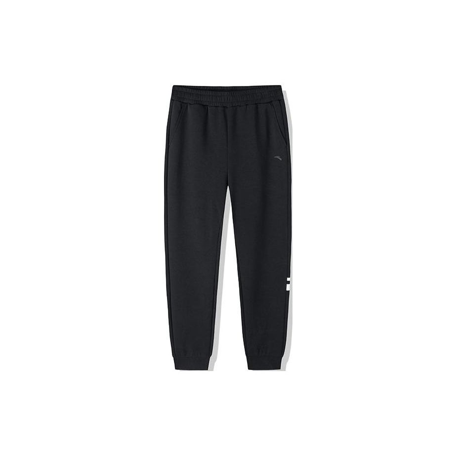 Anta Тренировочные брюки однотонные со средней талией и манжетами на шнурке, трикотажные спортивные штаны женские, черные 162217316-2