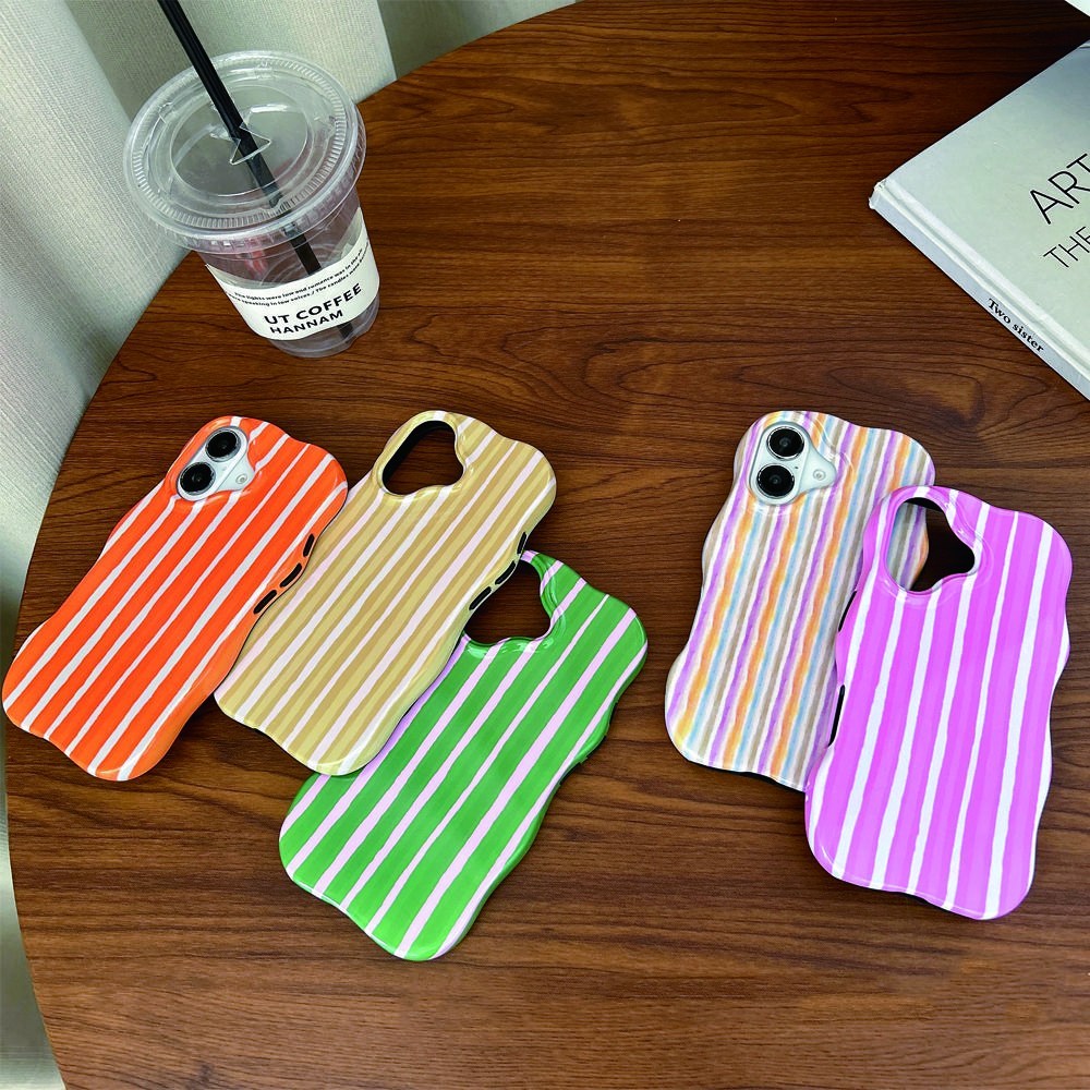 Модный чехол для телефона 2 в 1 с глянцевыми полосками для iPhone 17 Air 13 14 15 16 Pro Max, волнистые края, удобный на ощупь, твердая тонкая задняя крышка-чехол