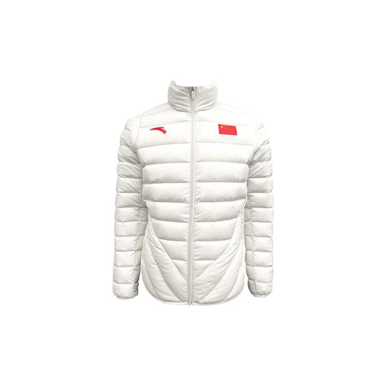 Anta Однотонный повседневный спортивный пуховик на молнии с воротником-стойкой, мужская верхняя одежда, песочно-серый 452210711-1