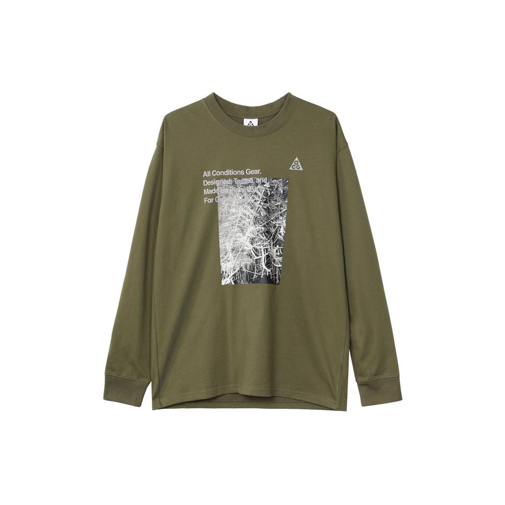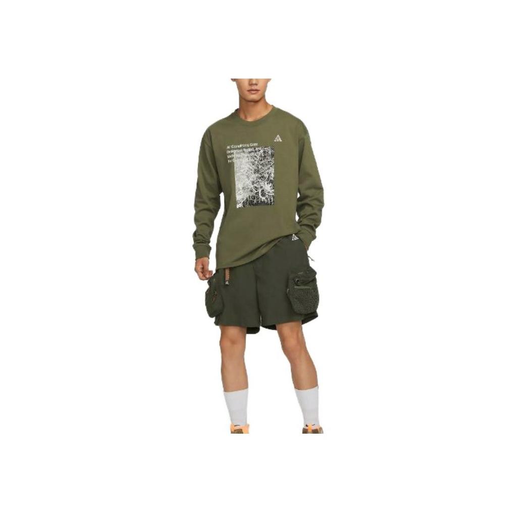 Nike Футболка с круглым вырезом и принтом в американском стиле с длинным рукавом, мужская, оливково-зеленая FN7319-222