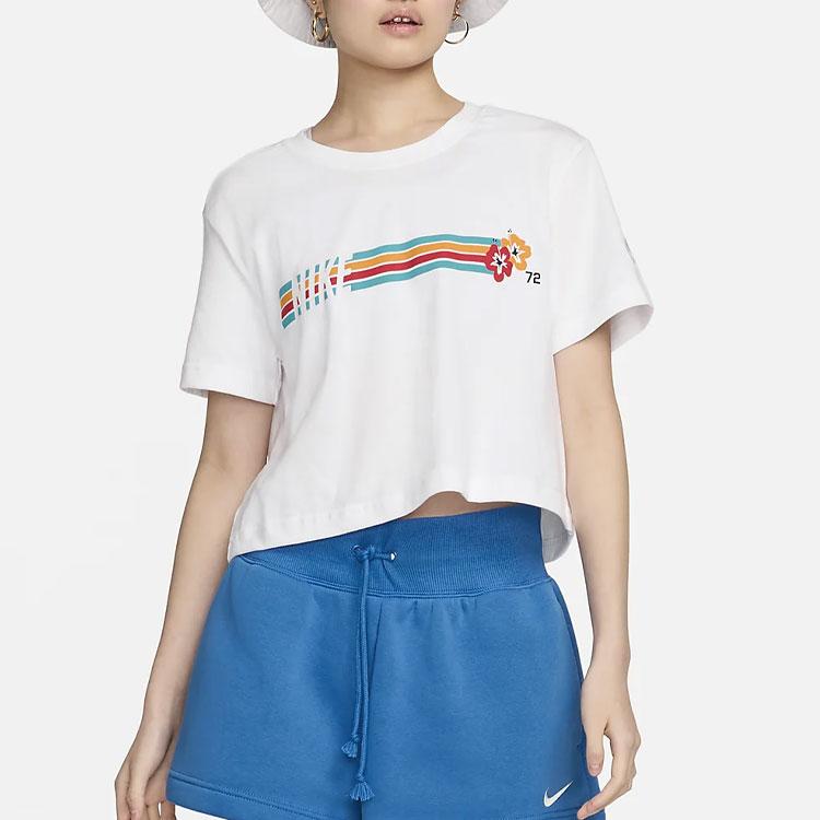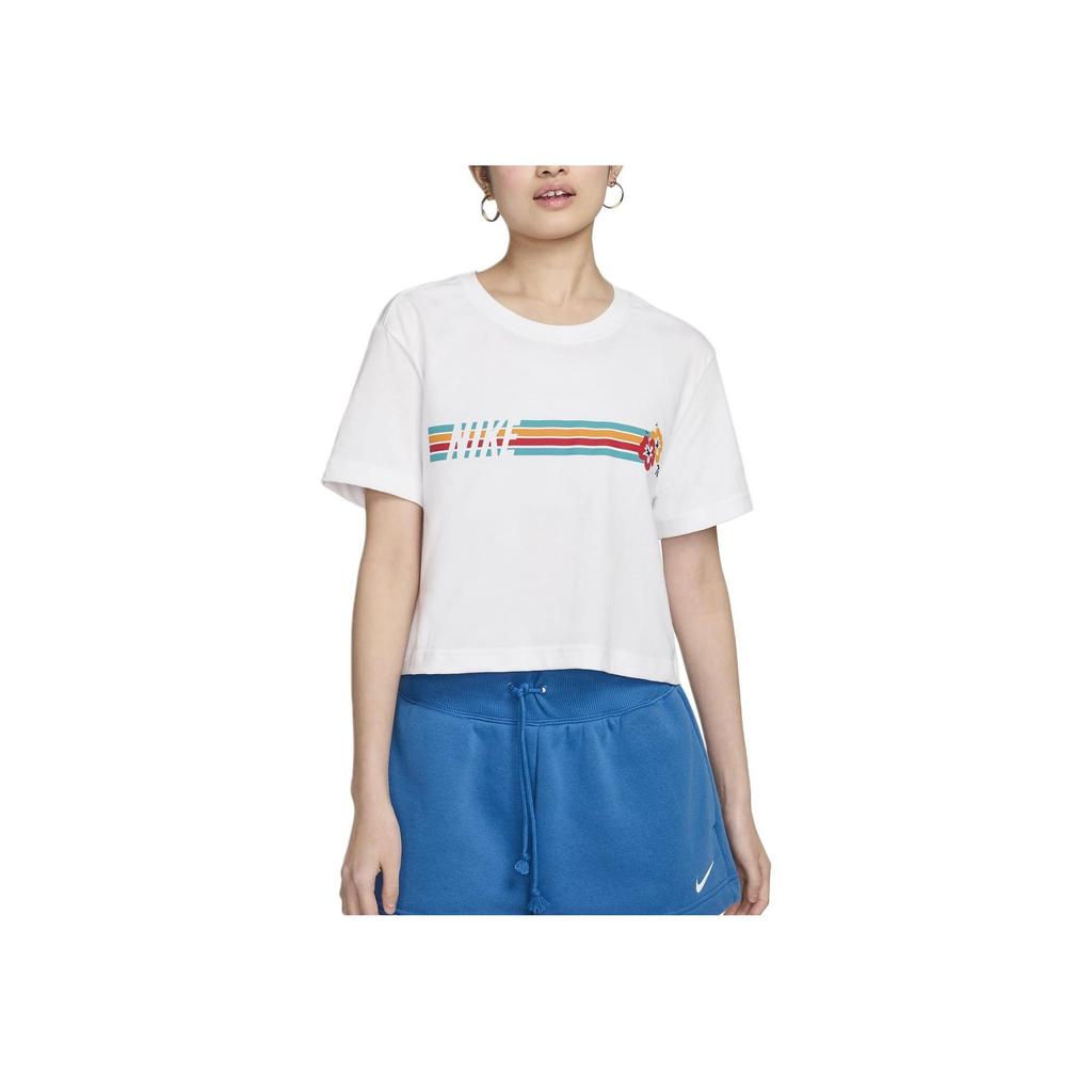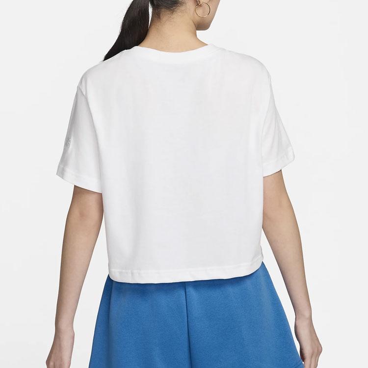 Nike Спортивная одежда, круглый вырез, свитер, удобная повседневная спортивная футболка с коротким рукавом и заниженной линией плеч, женская футболка, белая HF4616-100