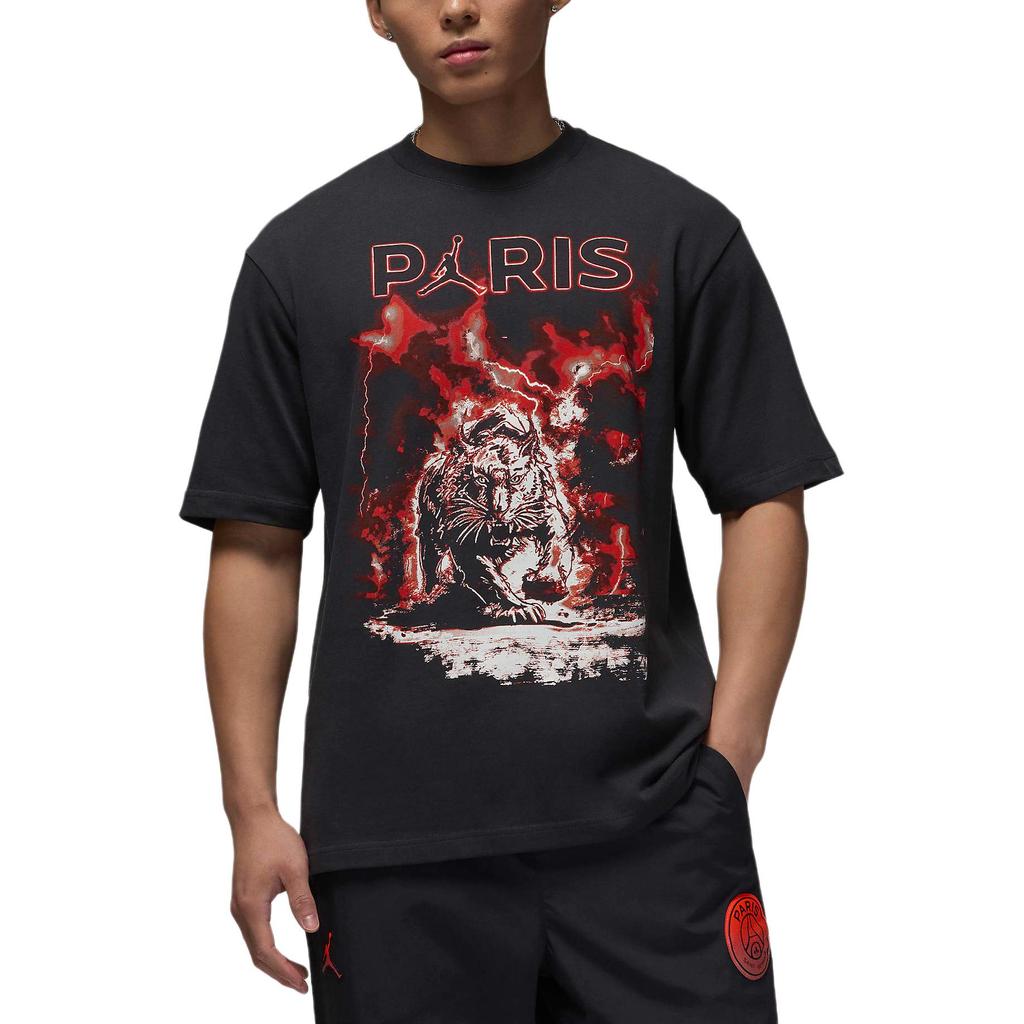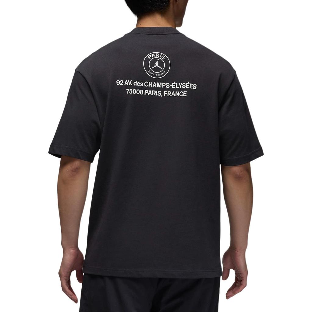 Jordan FW24 MJ PSG STMT SS GFX Удобная спортивная футболка с круглым вырезом и коротким рукавом для мужчин, цвет черный парусно-белый FV7734-045