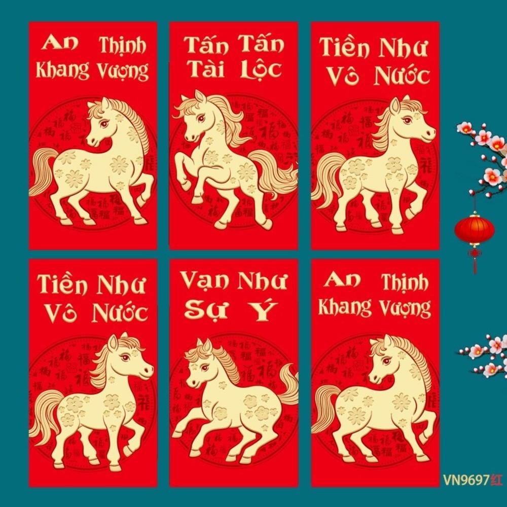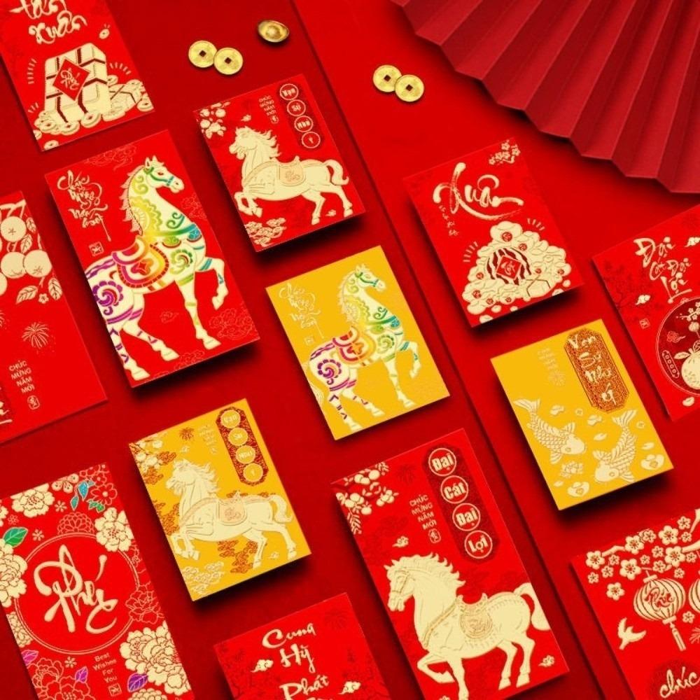 6 шт. 2026 год Лошади Вьетнамские красные конверты в китайском стиле Мультяшные красные пакеты Подарок на день рождения