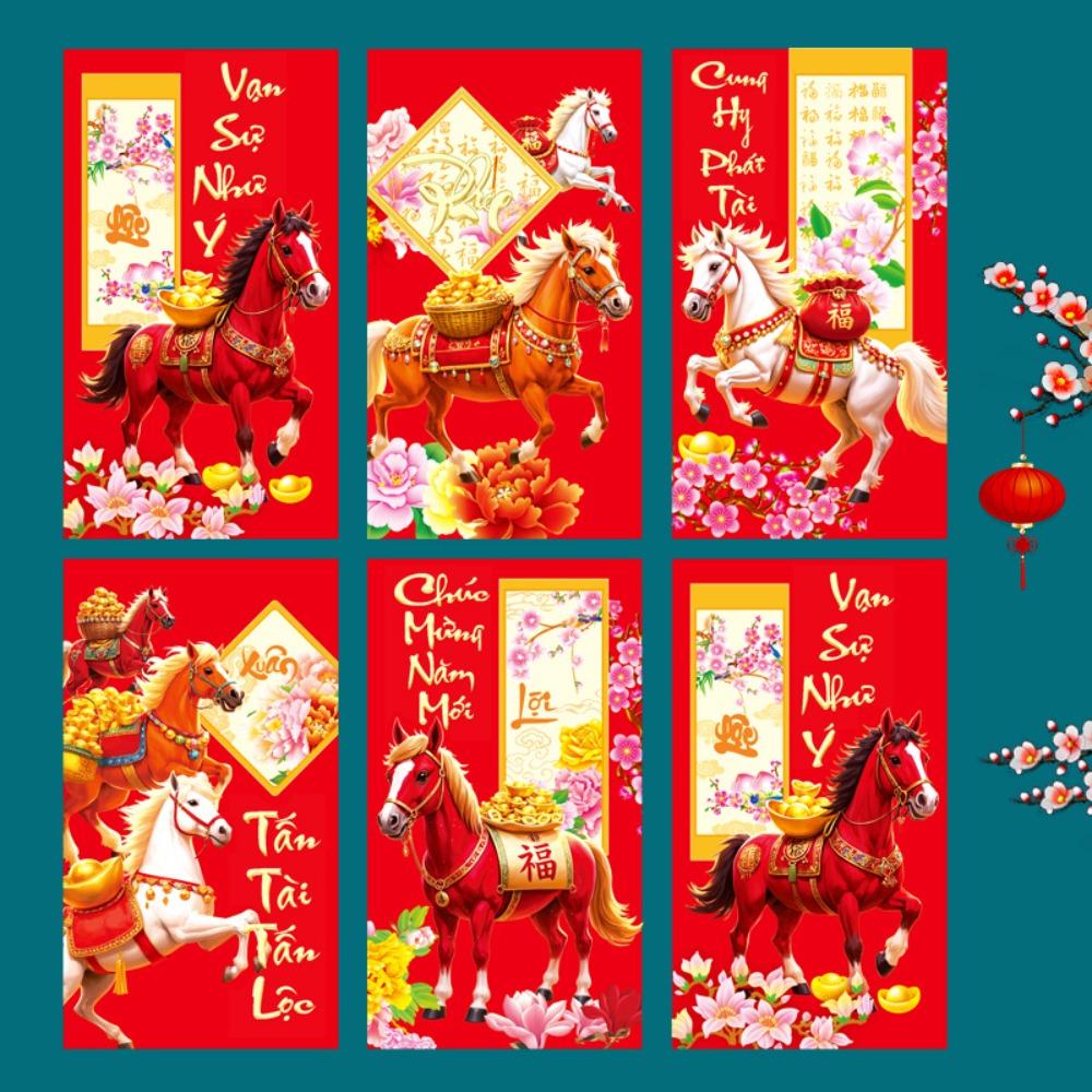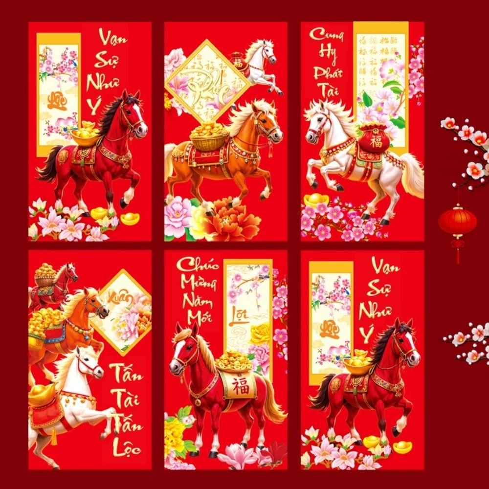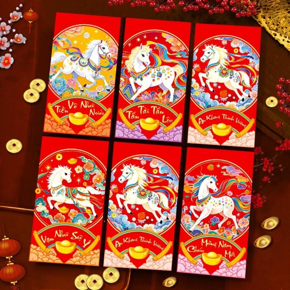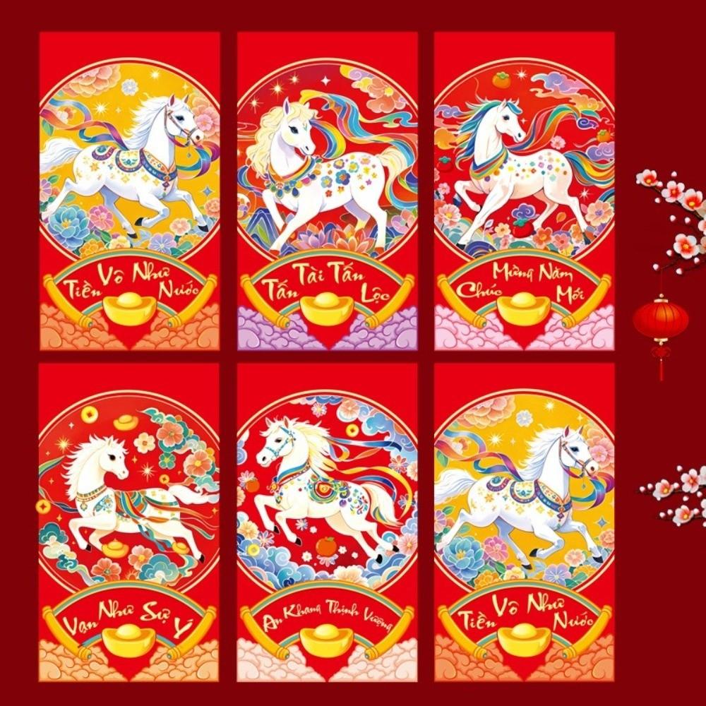 6 шт. 2026 год Лошади Новогодний денежный конверт Праздник Весны Красный конверт Фестивальное дарение