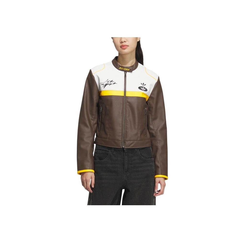Adidas Оригинальная модная простая универсальная куртка с воротником-стойкой, женская куртка коричневого и белого цвета JM8024