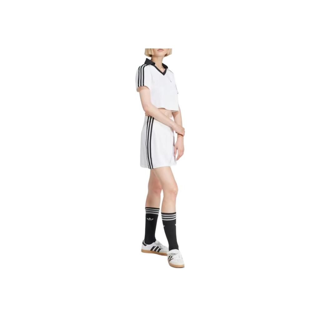Adidas Оригинальная полосатая рубашка поло с V-образным вырезом и коротким рукавом, женские топы белого цвета JD2608