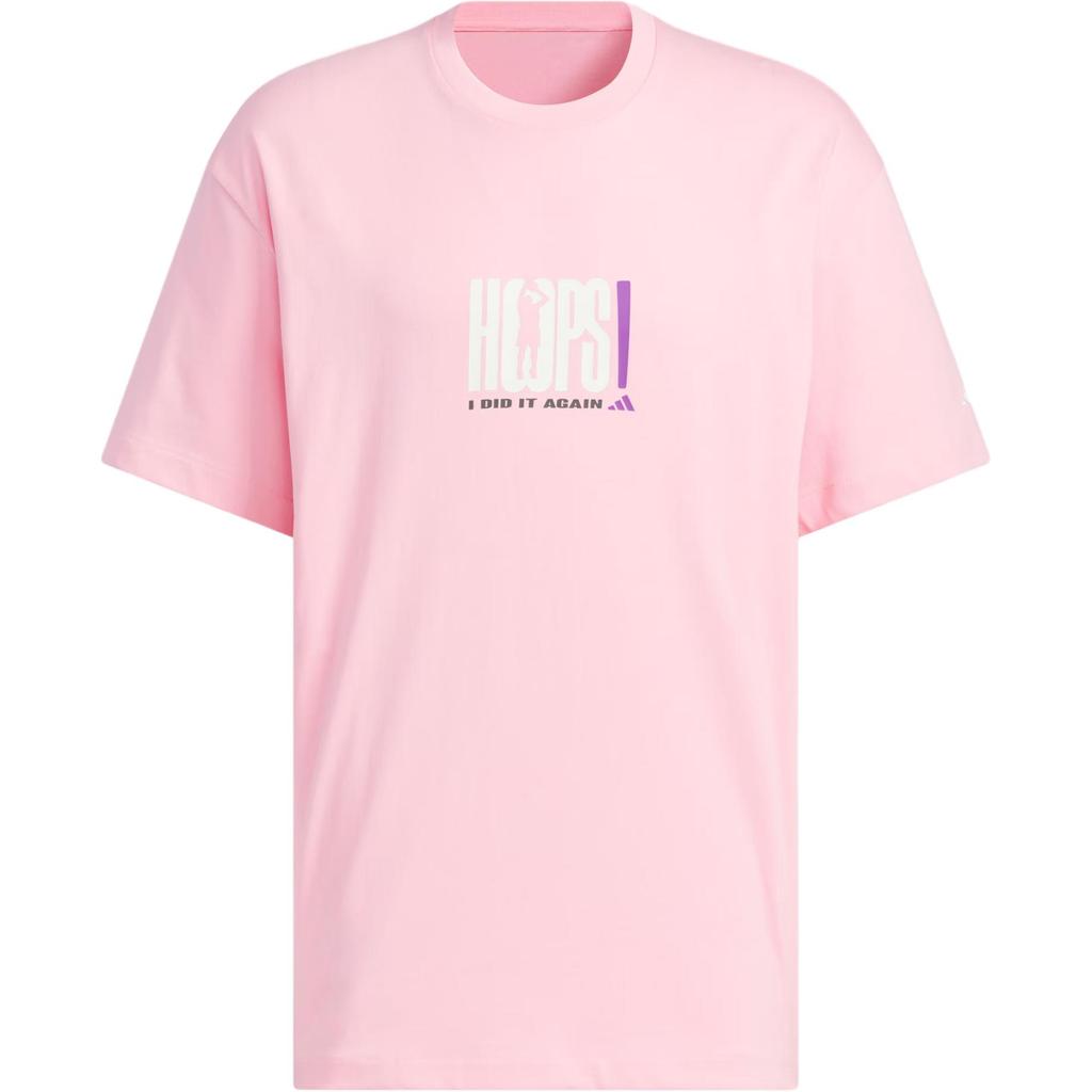 Adidas Баскетбольная футболка с графическим логотипом и надписью, с круглым вырезом, с коротким рукавом, мужская, светло-розовая, JN0744