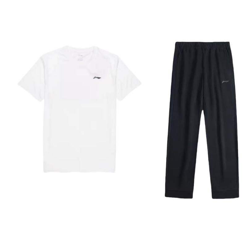 Спортивный костюм мужской Li Ning с логотипом, круглым вырезом, приспущенным плечом, свободными короткими рукавами, эластичной талией и длинными брюками, повседневный