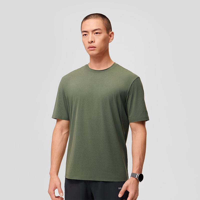 SAUCONY Дышащая Удобная Однотонная Спортивная Повседневная Футболка с Коротким Рукавом и Круглым Вырезом для Бега, Поездок на Работу, Мужские Топы Молочный-Армейский-Зеленый SC2249099A-GE27