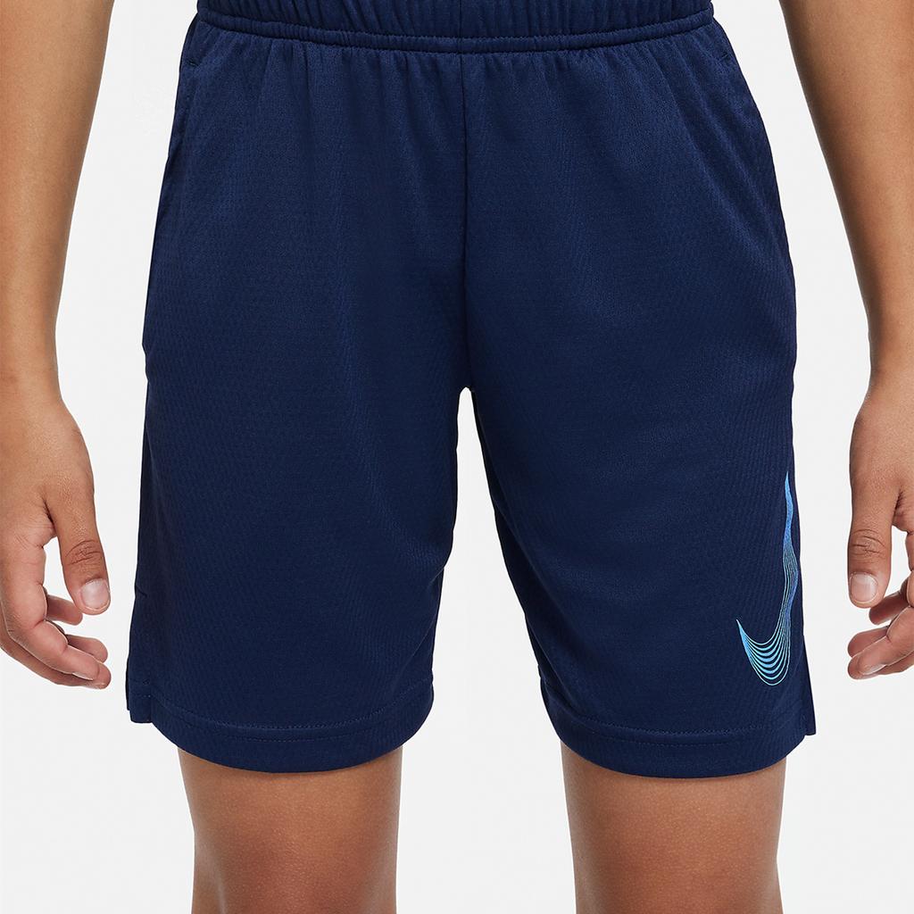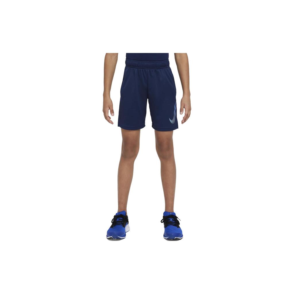 Nike Dri-FIT Принт логотипа Эластичный пояс Прямые штанины Детские шорты Детские шорты Темно-синие DM8537-410