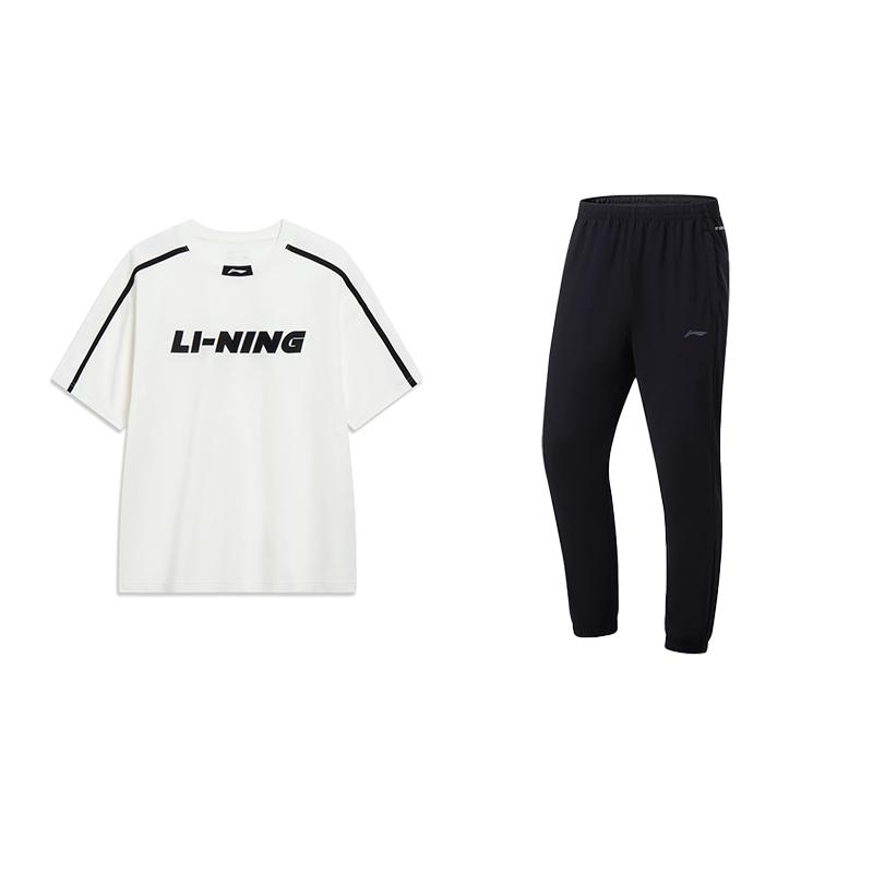 Свободный топ с круглым вырезом и короткими рукавами с принтом логотипа Li Ning, быстросохнущие длинные брюки, повседневный спортивный костюм, костюм унисекс YHSU175-1+AYKU835-1