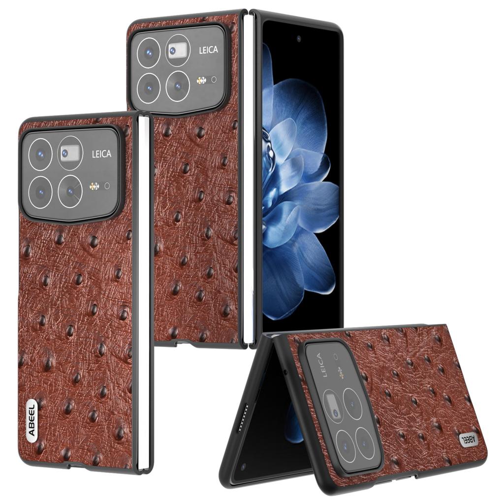 For Xiaomi Mix Fold 4 5G Case Genuine Cow Leather+PC Phone Cover Ostrich Texture