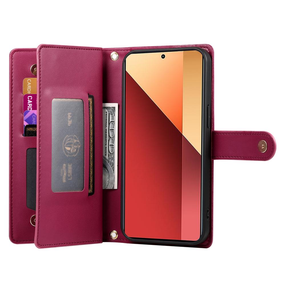 DF-011 For Xiaomi Poco M6 Pro 4G/Redmi Note 13 Pro 4G Wallet Case Zipper Leather Phone Cover — купить товар онлайн с бесплатной доставкой по всему миру!