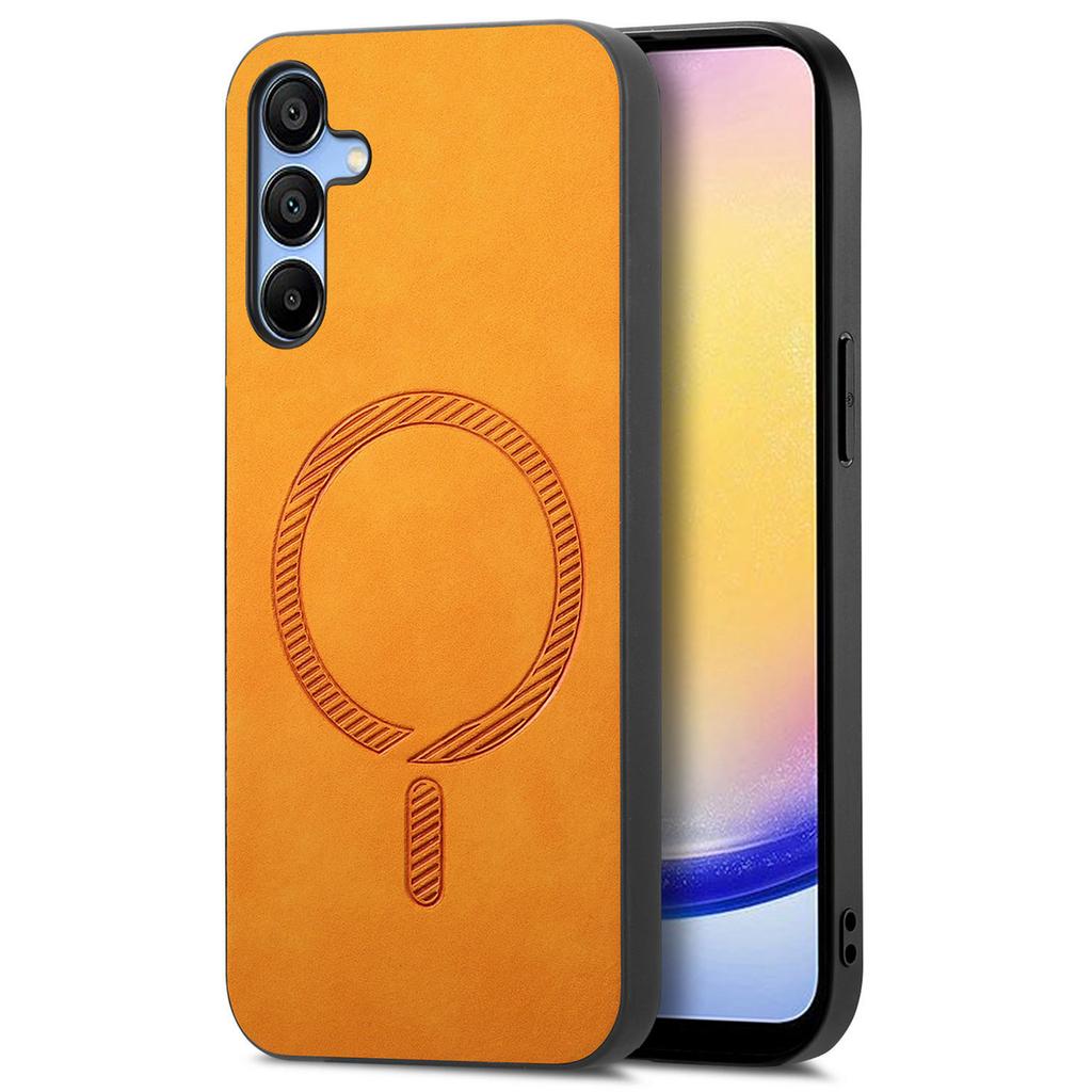 Для Samsung Galaxy A25 5G (Глобальный) (161,0 х 76,5 х 8,3 мм) Кожаный чехол-накладка, совместимый с MagSafe, с покрытием, приятным на ощупь
