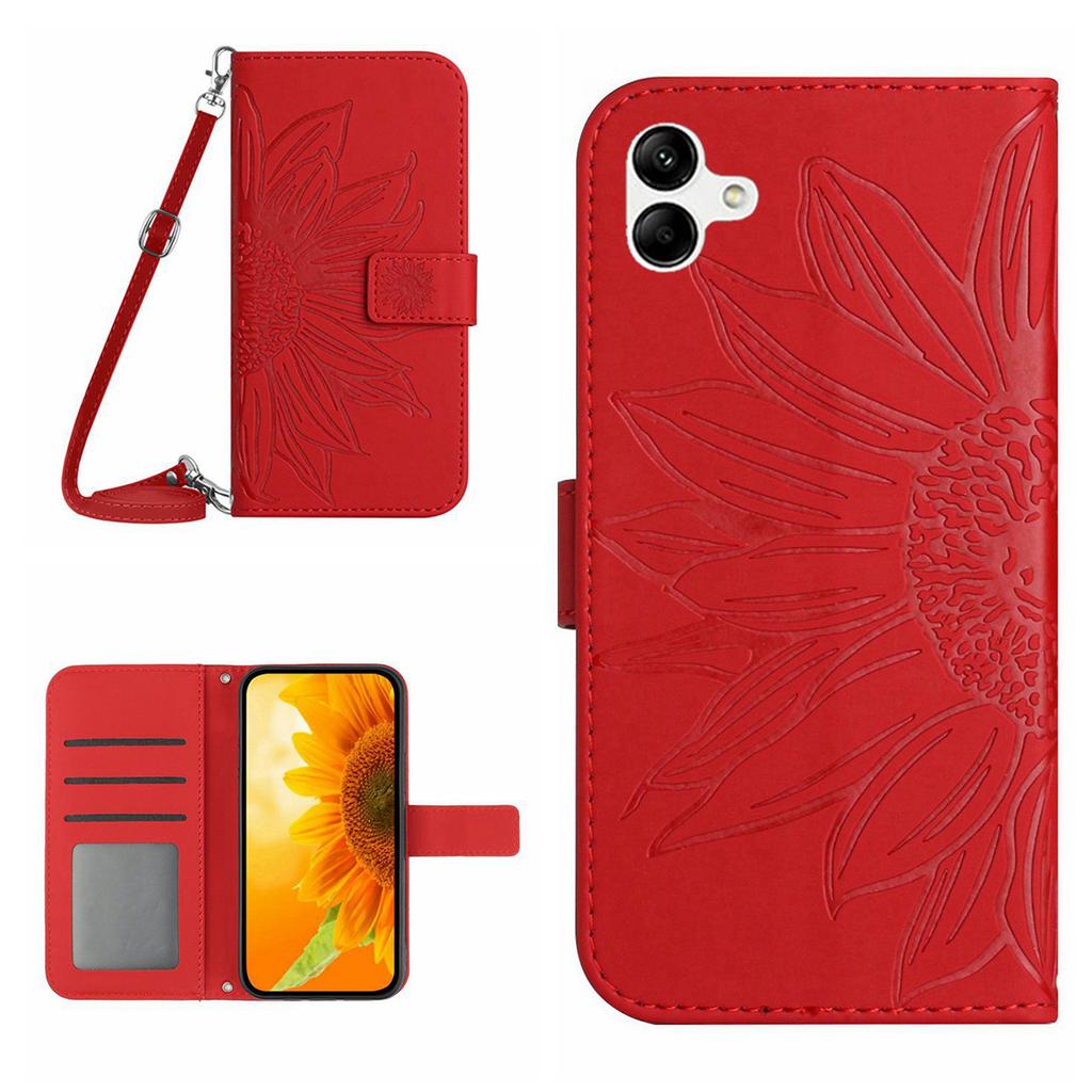 HT04 For Samsung Galaxy A06 4G Case PU Leather Sunflower Imprint Phone Cover with Long Strap