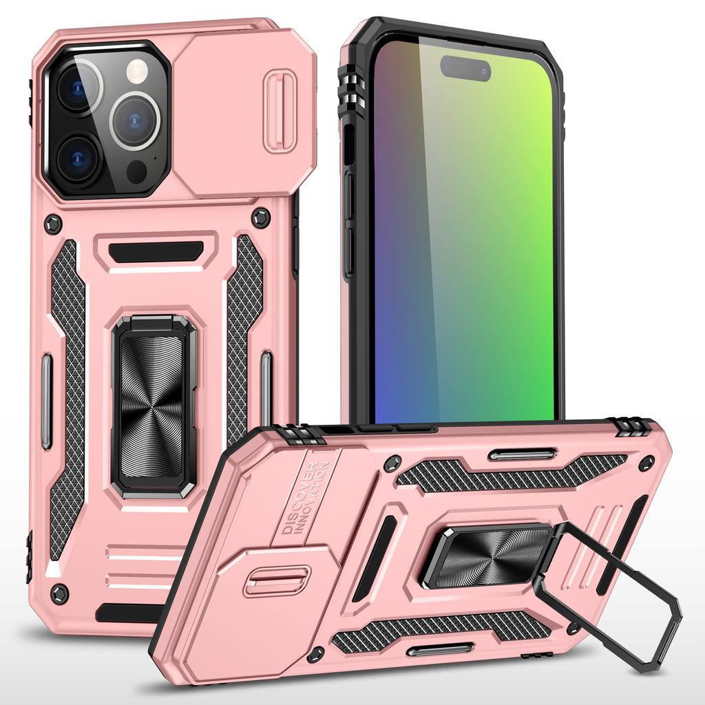 Серия Armor Чехол для iPhone 16 Pro Сдвижная крышка объектива ПК+ТПУ Противоударная подставка Чехол для телефона