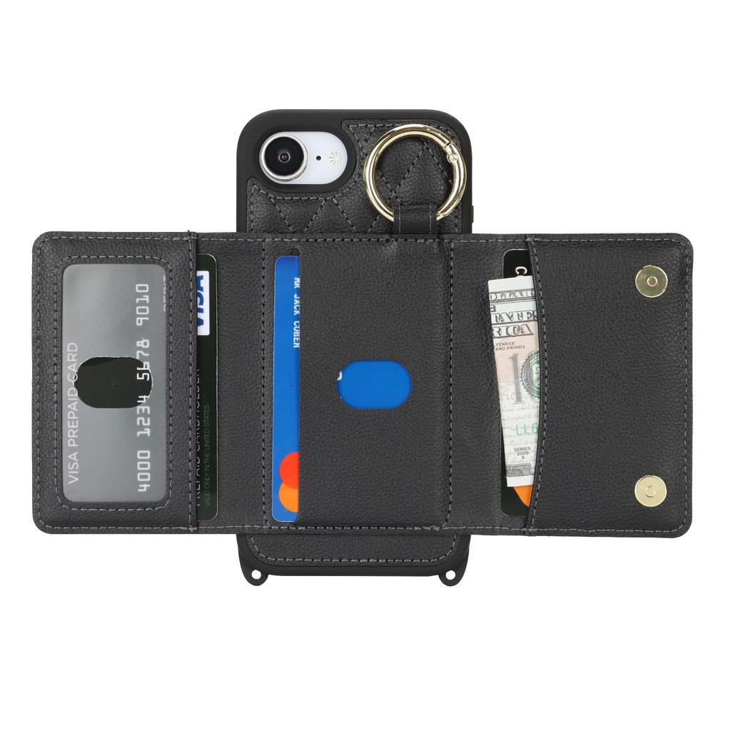 For iPhone 16e Case with Lanyard/Mirror/Card Holder Grids Pattern RFID Blocking Phone Cover — купить товар онлайн с бесплатной доставкой по всему миру!