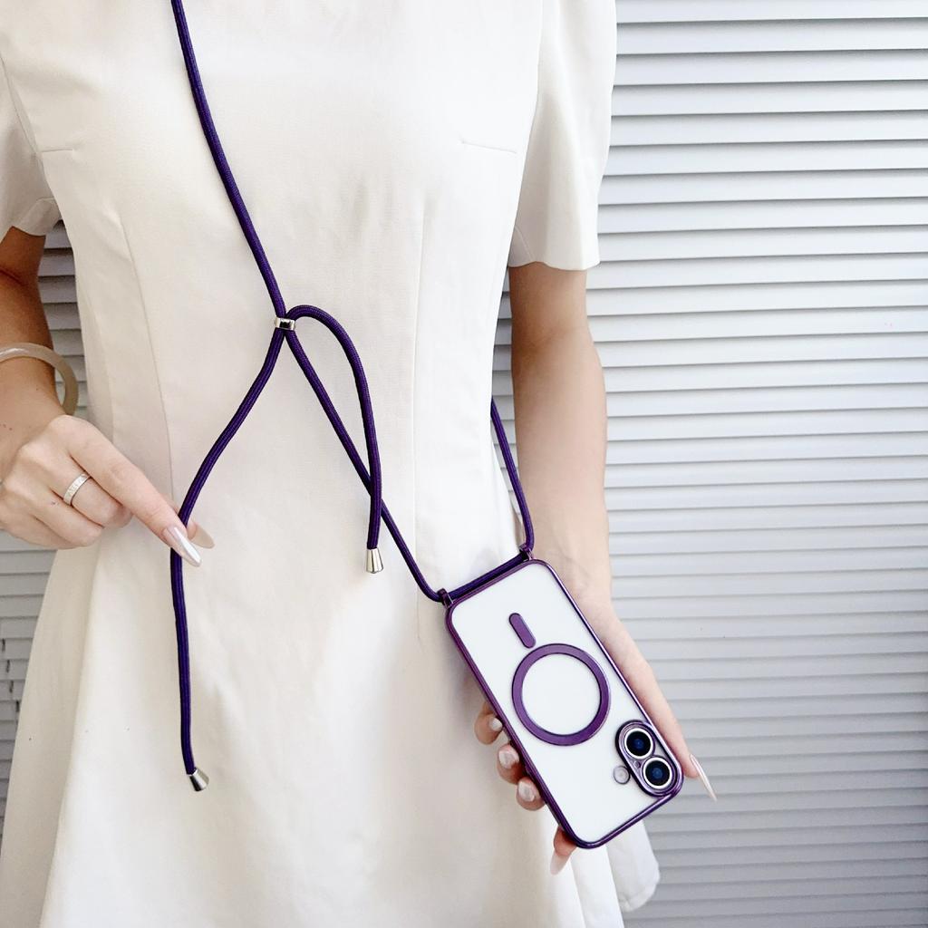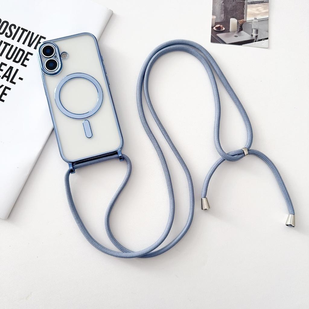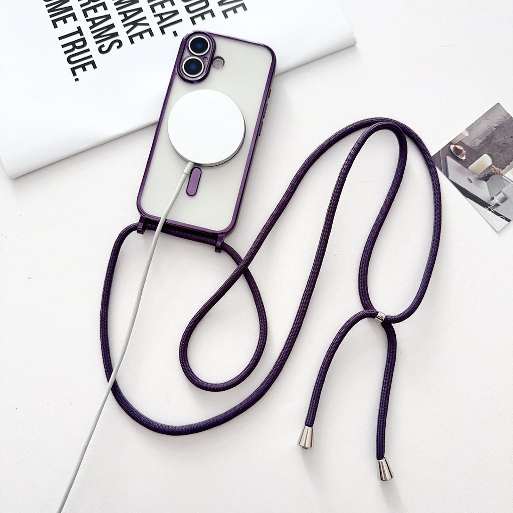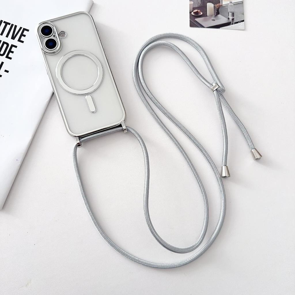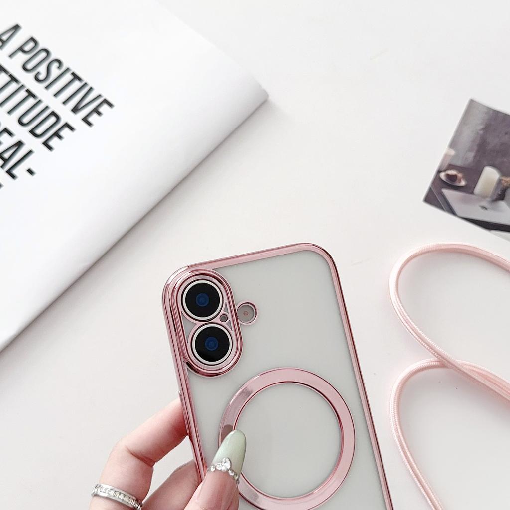 For iPhone 17 Case Compatible with MagSafe Electroplating TPU Phone Cover with Long Lanyard
