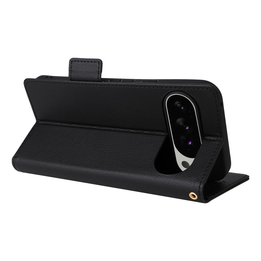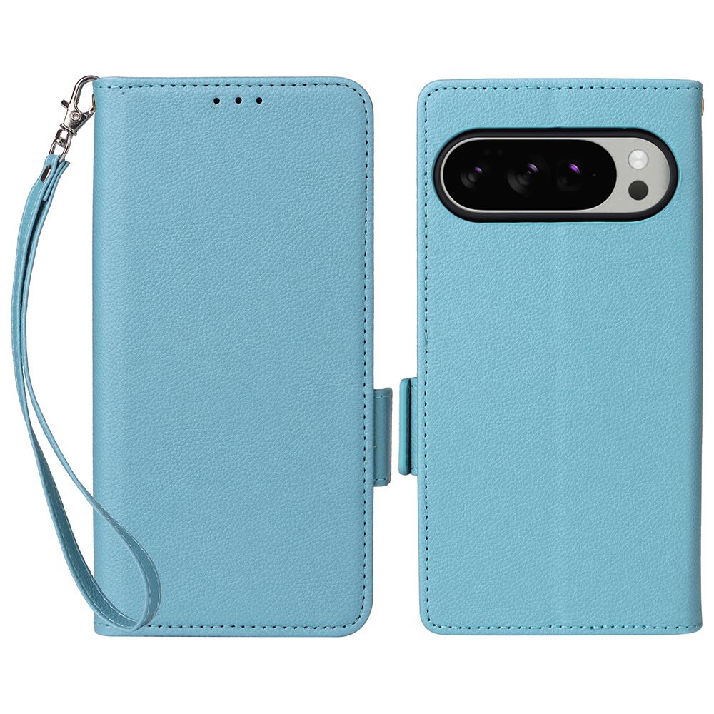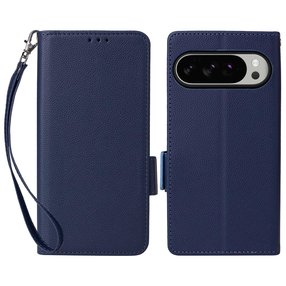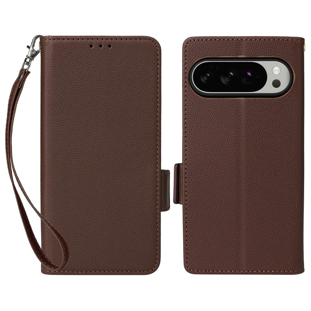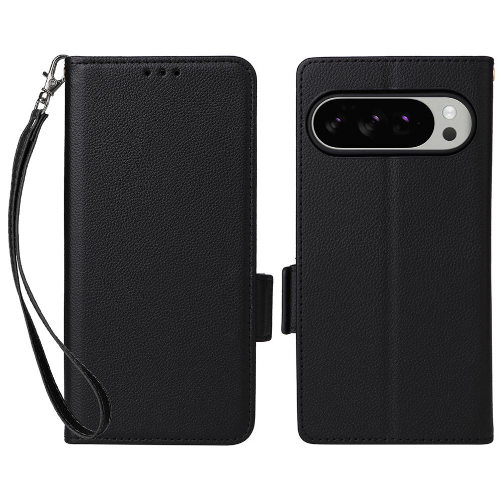 Чехол для Google Pixel 10 Pro XL с ремешком на запястье, текстура личи, кошелек из искусственной ПУ кожи, чехол для телефона