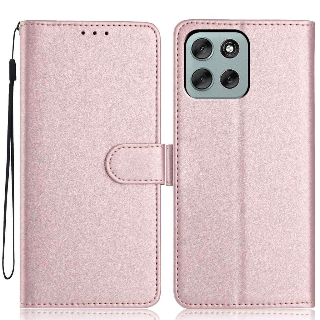 For Motorola Moto G56 5G Wallet Case with Strap/Multiple Card Slots Solid Color Leather Stand Phone Cover