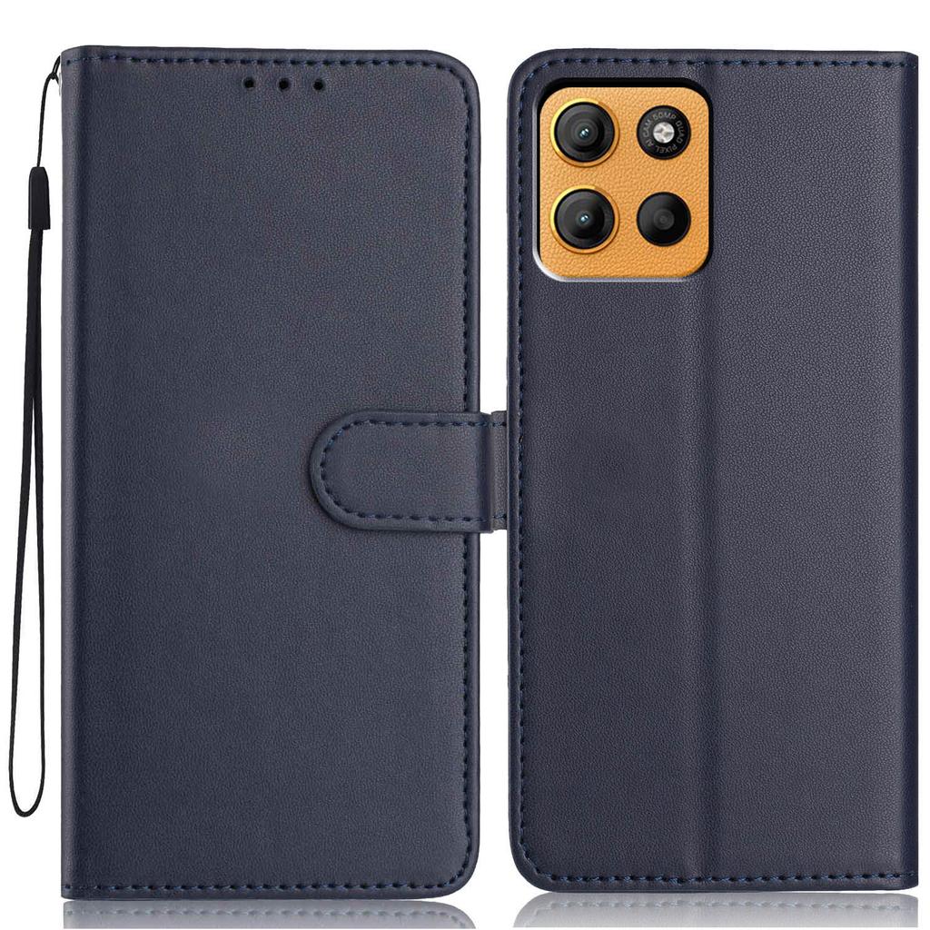 Чехол-кошелек для Motorola Moto G15 4G/G15 Power 4G, однотонный кожаный чехол-подставка для телефона с ремешком/множеством слотов для карт