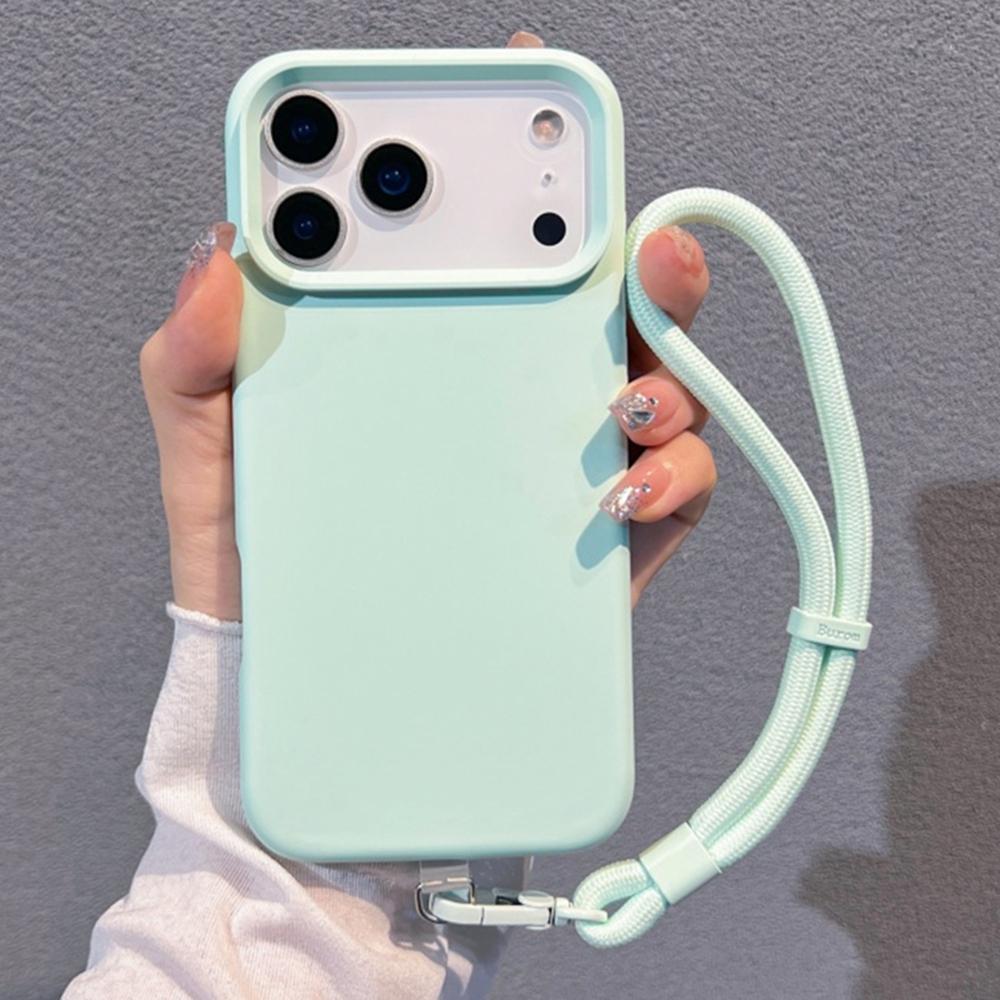 Чехол для iPhone 17 Pro с мягкой подкладкой из микрофибры, жидкий силикон+ПК, чехол для телефона с ремешком на запястье