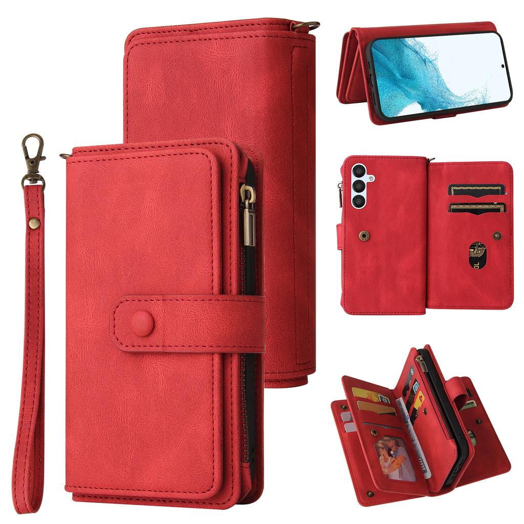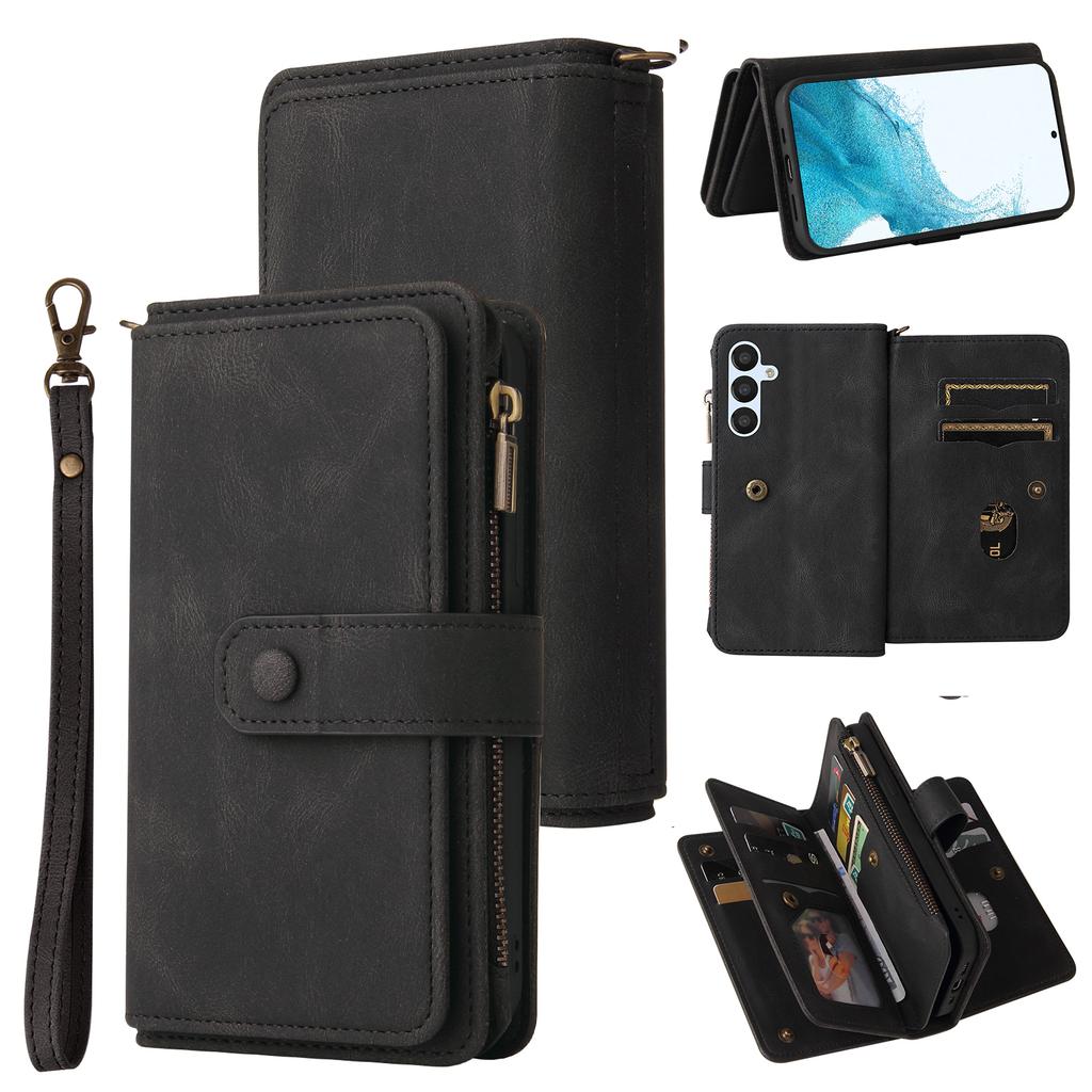 Чехол-кошелек на молнии для Samsung Galaxy A54 5G с 15 отделениями для карт и ремешком, кожаный чехол для телефона