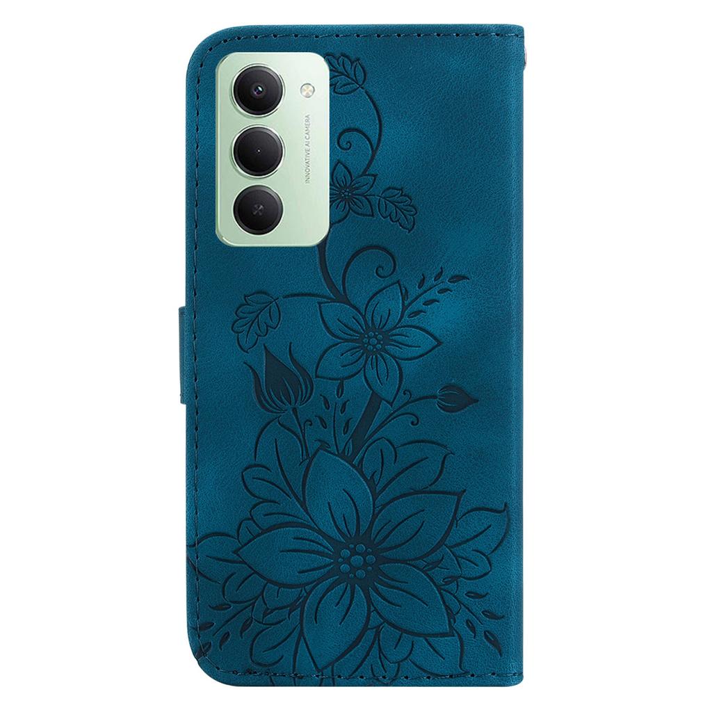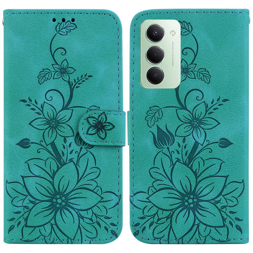 Для Xiaomi Redmi 15 5G (Глобальный) (169 мм) Чехол-подставка Кожаный чехол для телефона с тиснением в виде лилии и ремешком на запястье