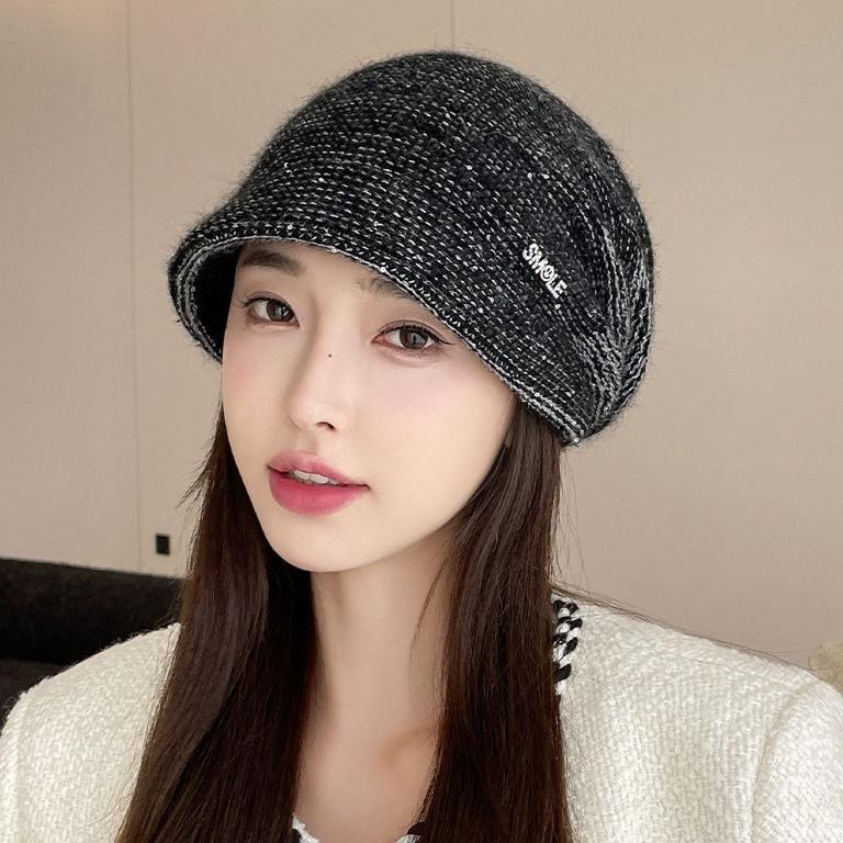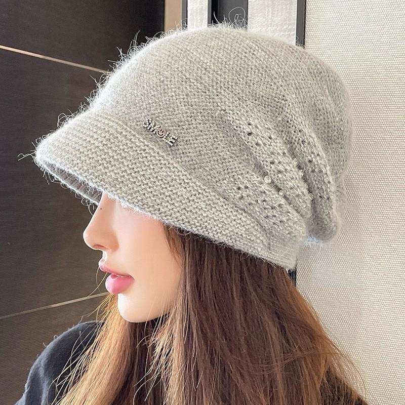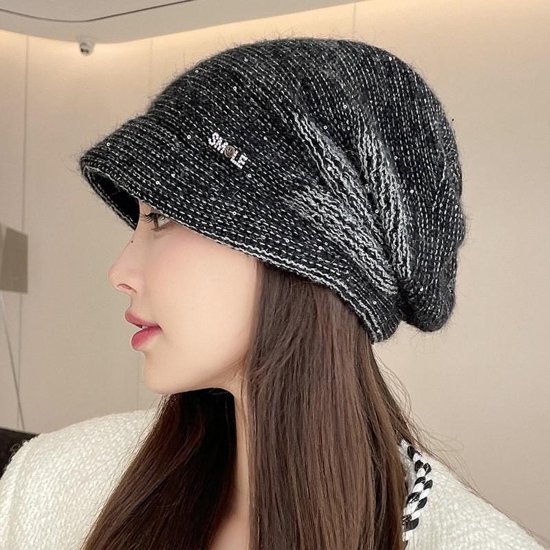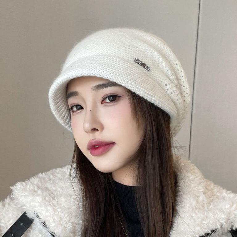 Женская осенне-зимняя шапка-бини, ветрозащитная и теплая, с козырьком, универсальная, модная вязаная шапка