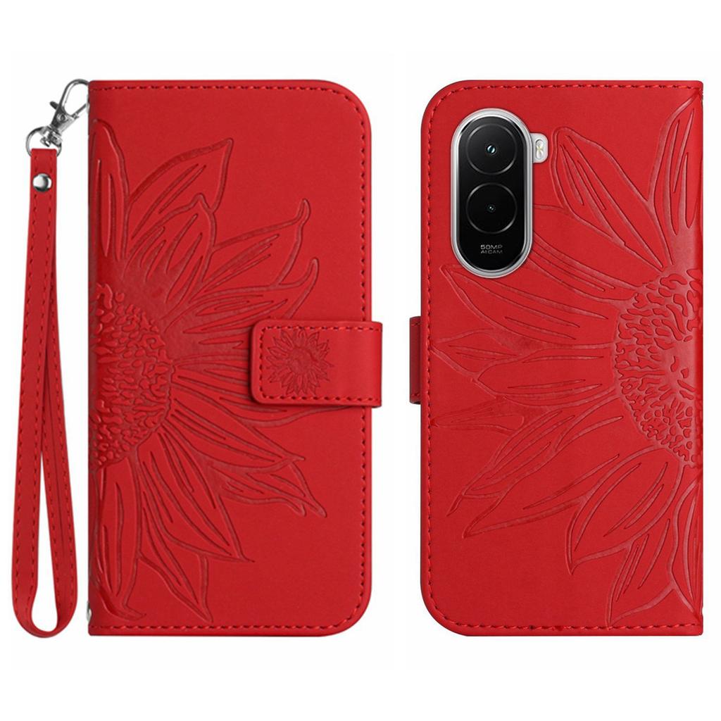 Для Xiaomi Poco M7 4G (США) (171 мм) Чехол Кожаный кошелек с подсолнухом и ремешком на запястье