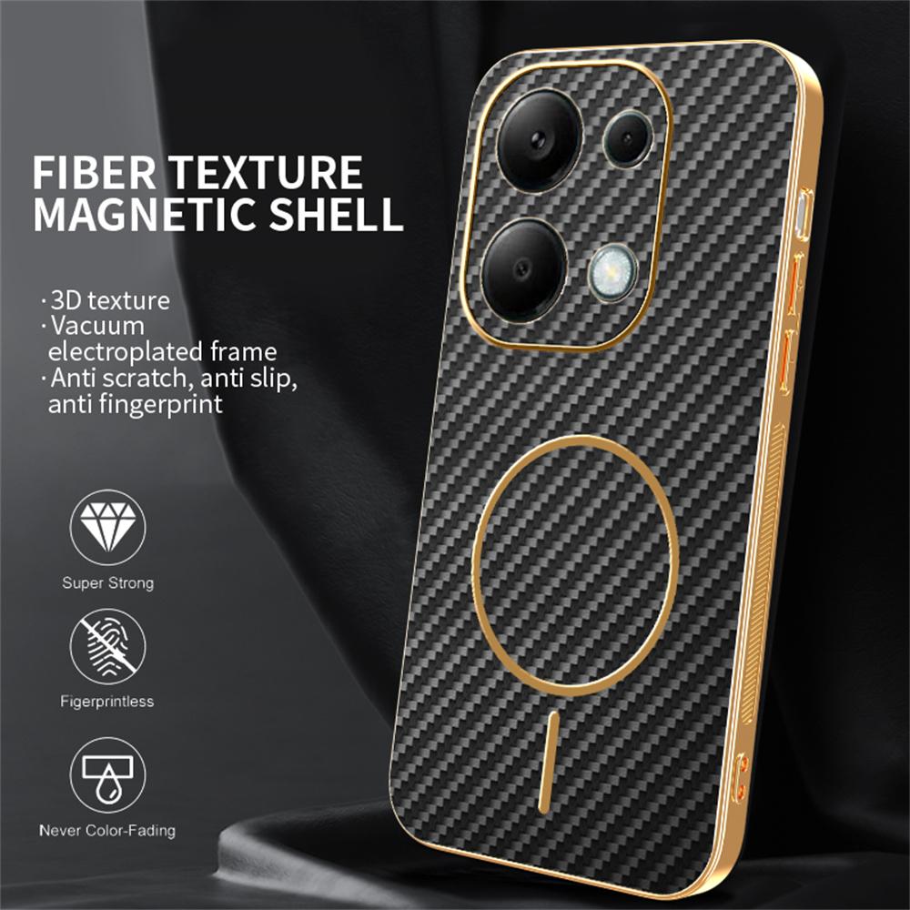 Phone Case For Xiaomi Redmi Note 13 Pro 4G/14S 4G/Poco M6 Pro 4G Carbon Fiber Textured Electroplated TPU Back Cover