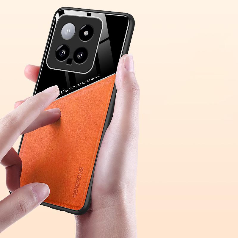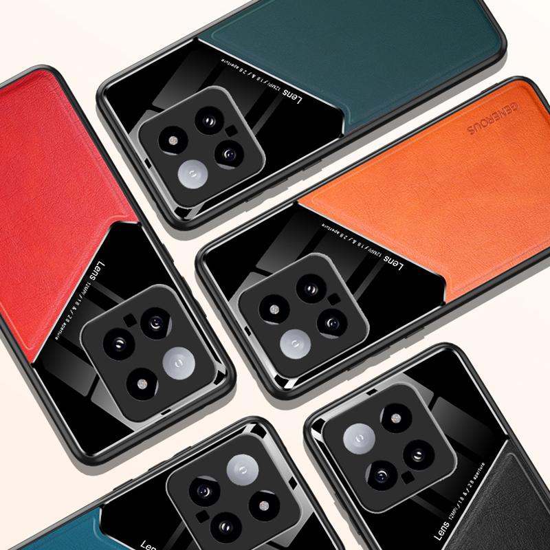 For Xiaomi 14 Cell Phone Case Anti-fall PU+TPU+PC Magnetic Car Mount Back Cover
