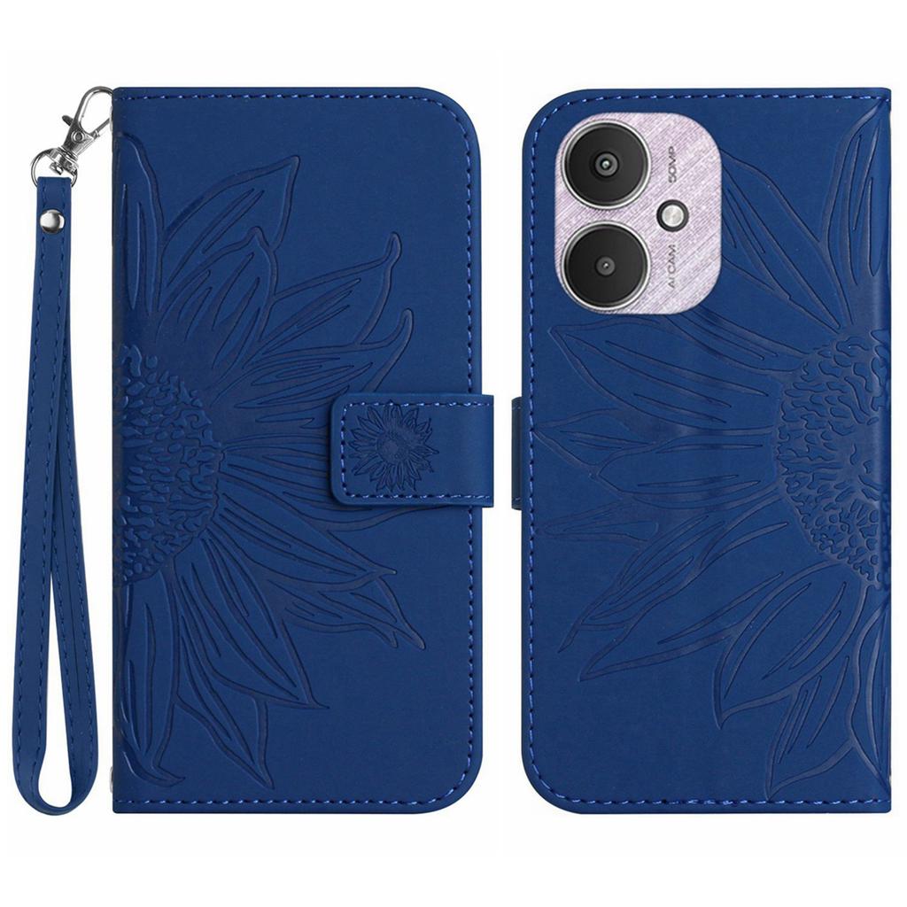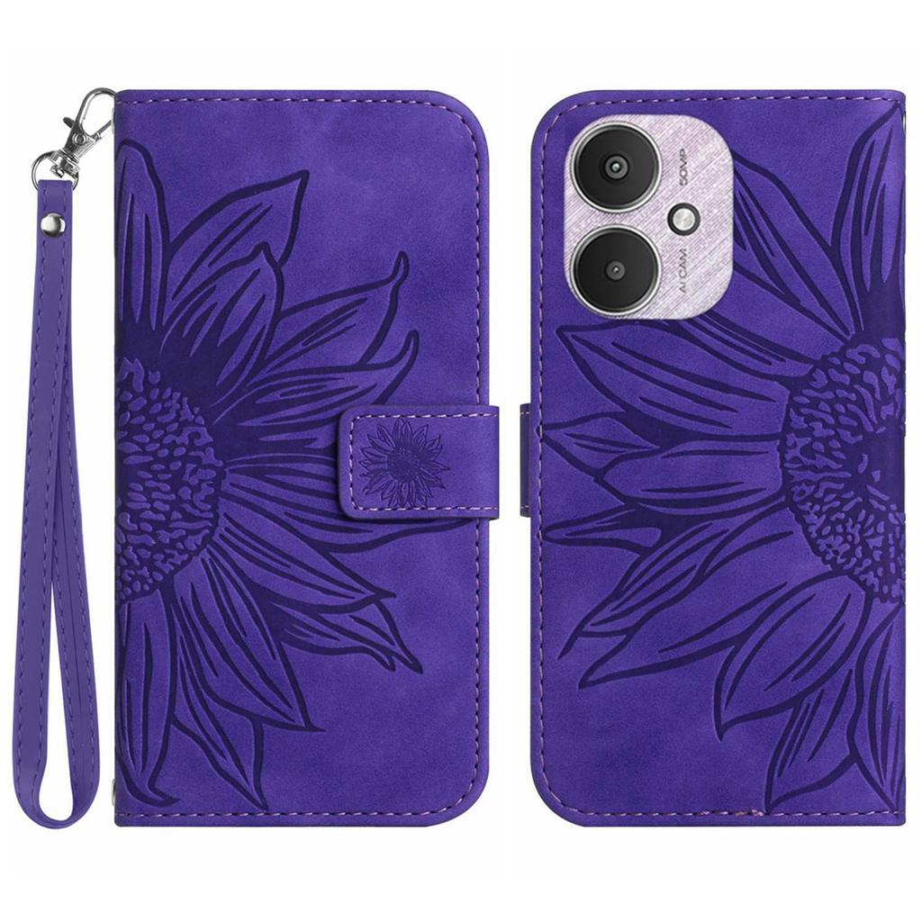 HT04 Для Xiaomi Redmi 13C 4G/5G/13R 5G/Poco M6 5G/Poco C65 4G Чехол с ремешком на запястье Подсолнух Обложка-кошелек для телефона