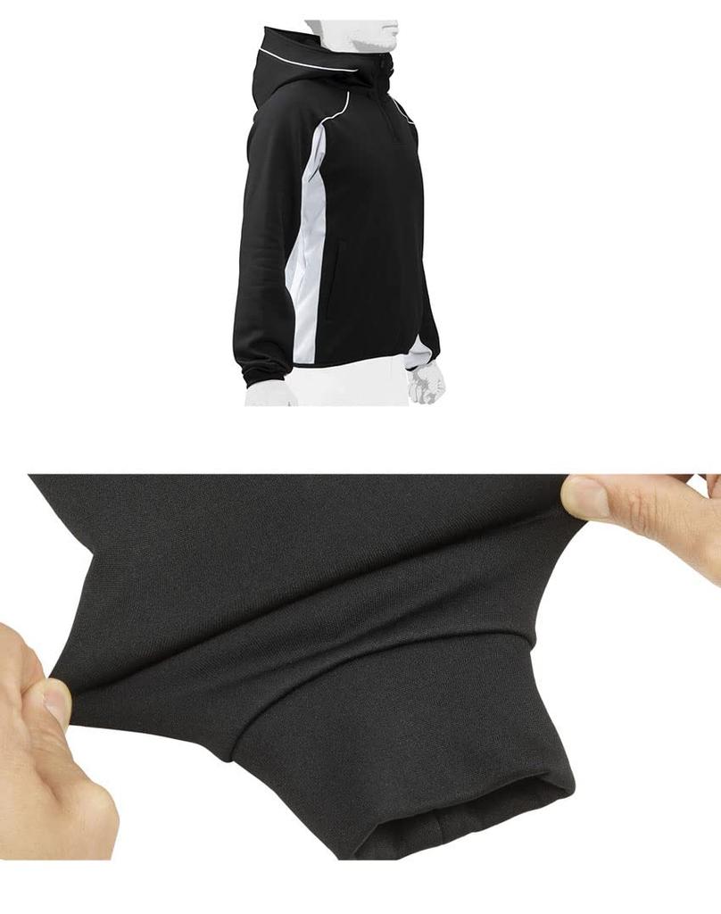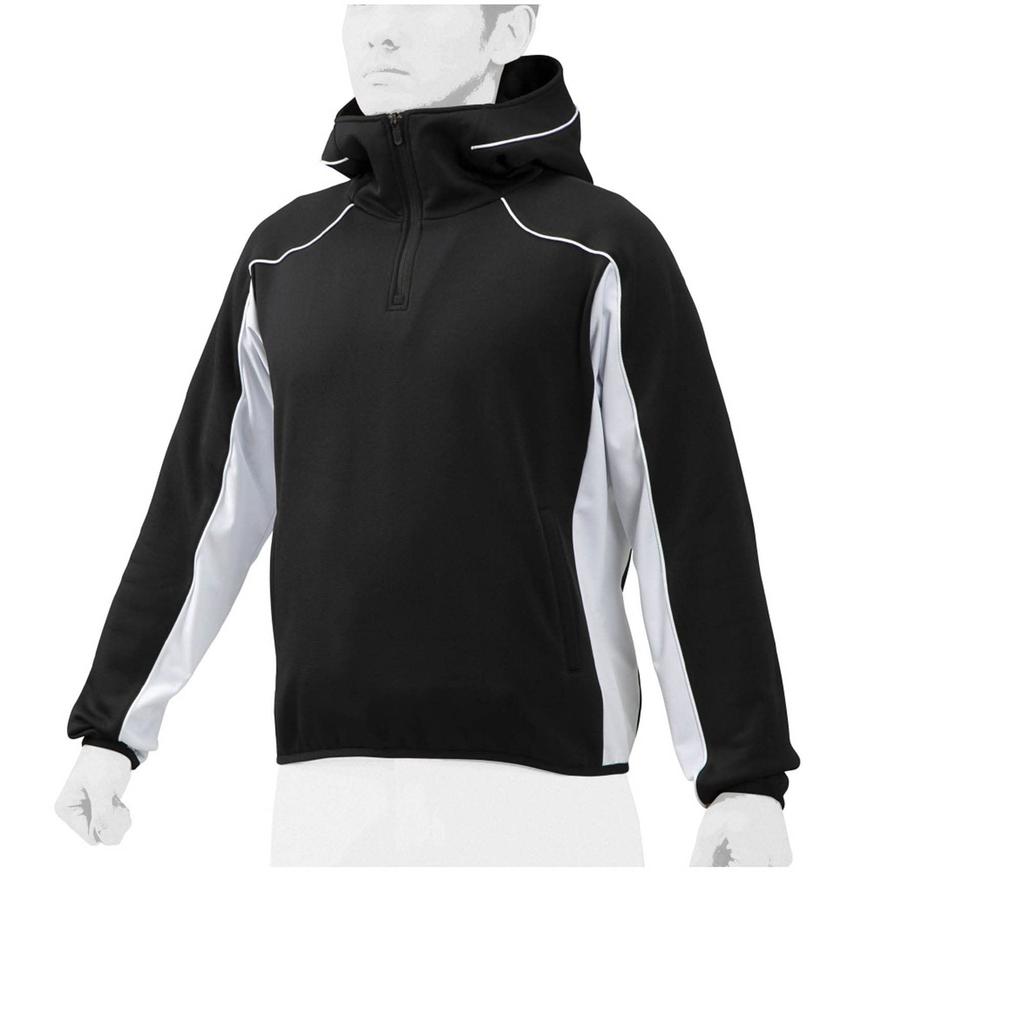 Mizuno Худи из эластичного трикотажа для бейсбола/софтбола (Половина молнии), 12JE0K26, Средний, Черный/Белый