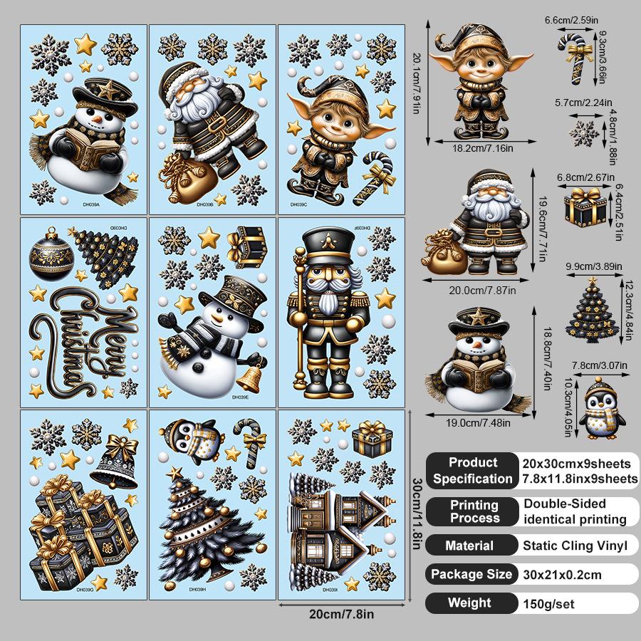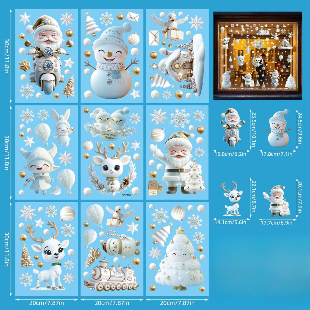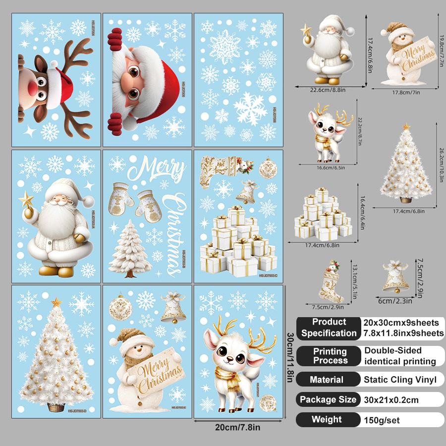 9 листов рождественских наклеек на окна, милые Санта, снеговик, олень, с Рождеством, наклейки на стекло, зимняя страна чудес, наклейки на окна