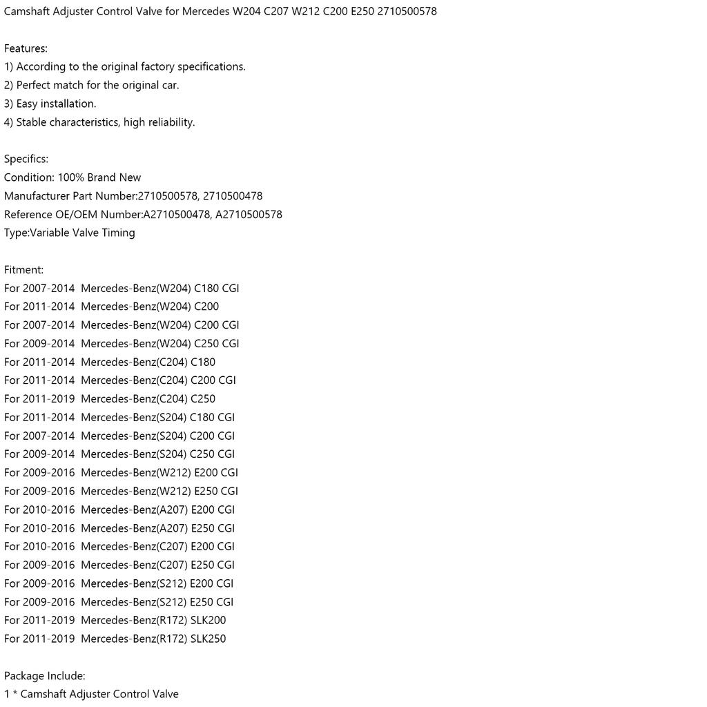 Клапан управления регулятором распредвала для Mercedes W204 C207 W212 C200 E250 2710500578