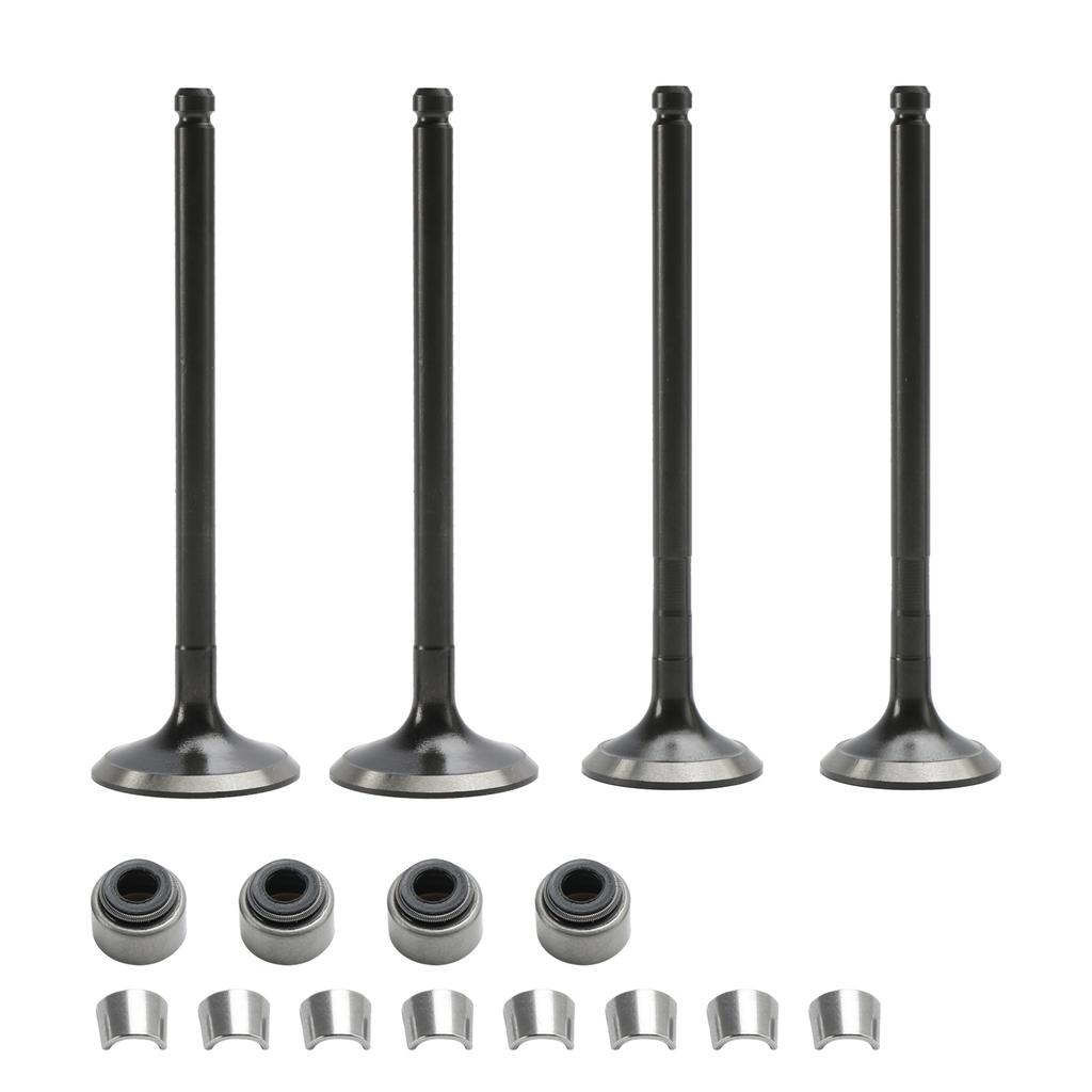 Комплект включает впускной клапан, выпускной клапан, сальник стержня клапана и сухари клапана (вы получаете именно то, что изображено).